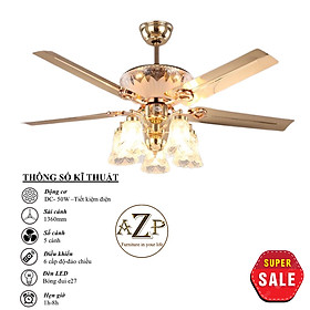 Siêu Sales QUẠT TRẦN AZP- 5 CÁNH KIM LOẠI, CÔNG XUẤT 50W, CÓ REMOTE- Hàng Nhập Khẩu Động cơ: DC - 50W - Tiết kiệm điện Sải Cánh: 1360MM Chất Liệu Cánh: kim loại Điều