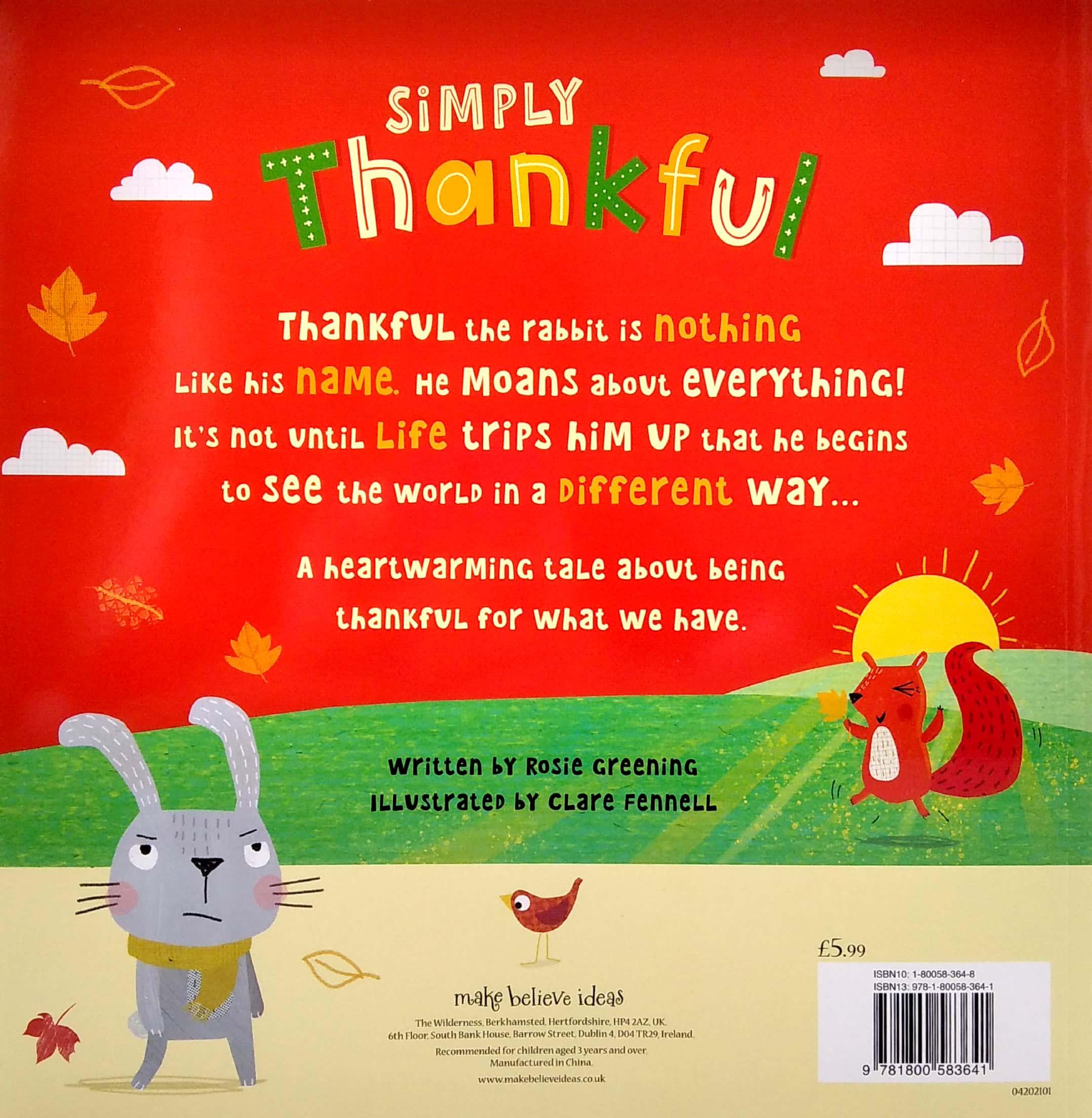 Joyful and Thankful are best friends in the forest . . . but they’re very different. Joyful is happy and bouncy, just like her name. But Thankful is gloomy and ungrateful! Luckily, he soon learns to appreciate Autumn, and be thankful for his friends, family and the beauty of the forest around him. This beautiful, rhyming book helps teach children about the value of being with loved ones and giving thanks for what they have. SWEET RHYMING STORY ABOUT BEING THANKFUL