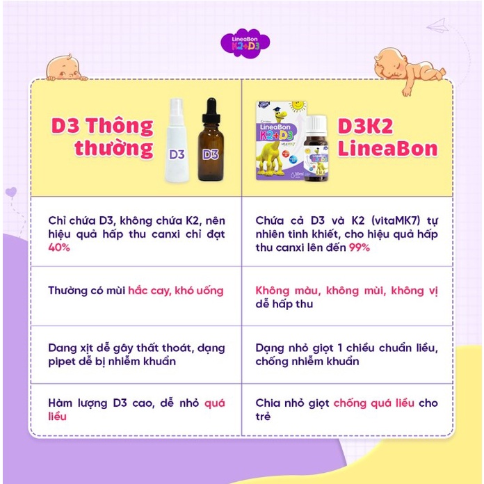 LINEABON D3 K2 chống còi xương tăng chiều cao vượt trội cho bé