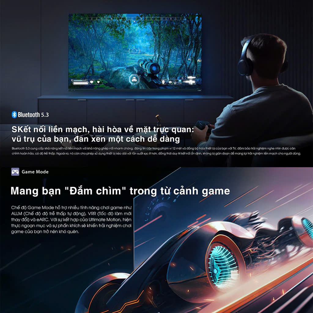 - Công nghệ xử lý hình ảnh: Chấm lượng tử - Quantum Dot Color, AI 4K Upscaling, Color Re-Master, Super Contrast Booster, Ultra-Essential PQ, Dolby vision, HDR10, DR10+decode, Filmaker mode, AI Football Mode, Dolby Vision for gaming, VRR...