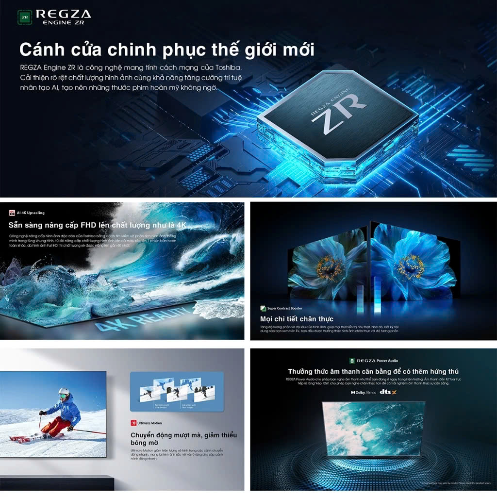 - Công nghệ âm thanh: Dolby Atmos, Regza Power Audio, DTS X
