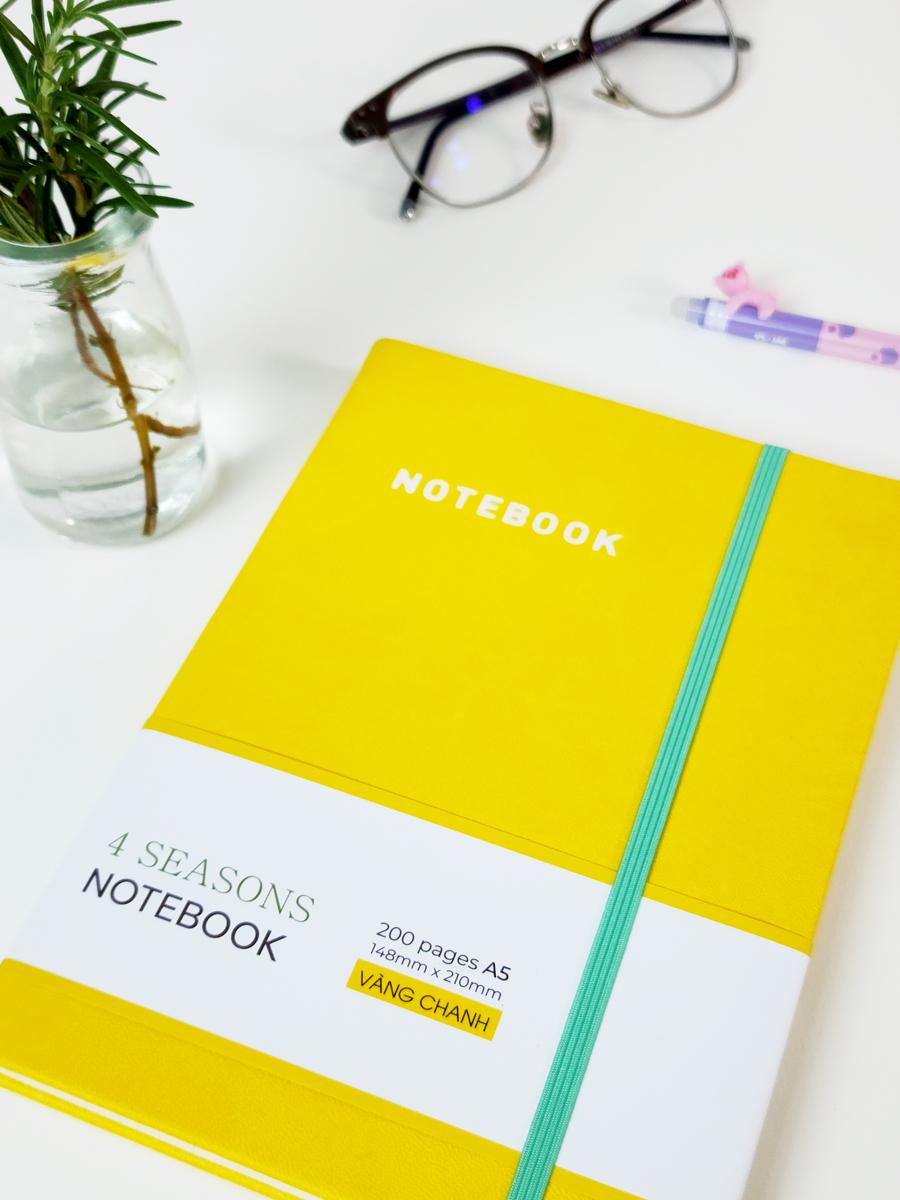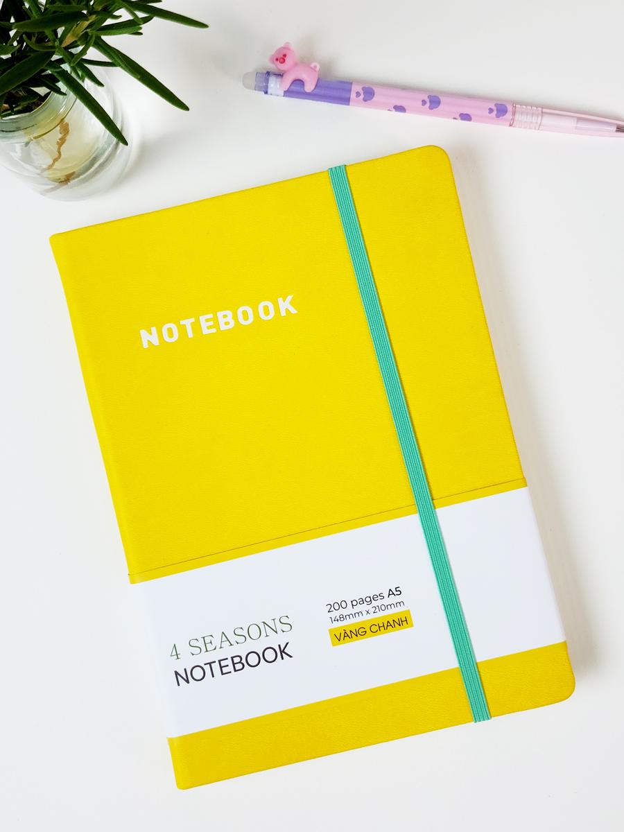Sổ Bìa Da A5 - Kẻ Ngang 200 Trang 80gsm - 4 Seasons - The Sun 02 - Màu Vàng Chanh - Sản phẩm sử dụng loại giấy láng, mịn, không lóa mắt, phù hợp