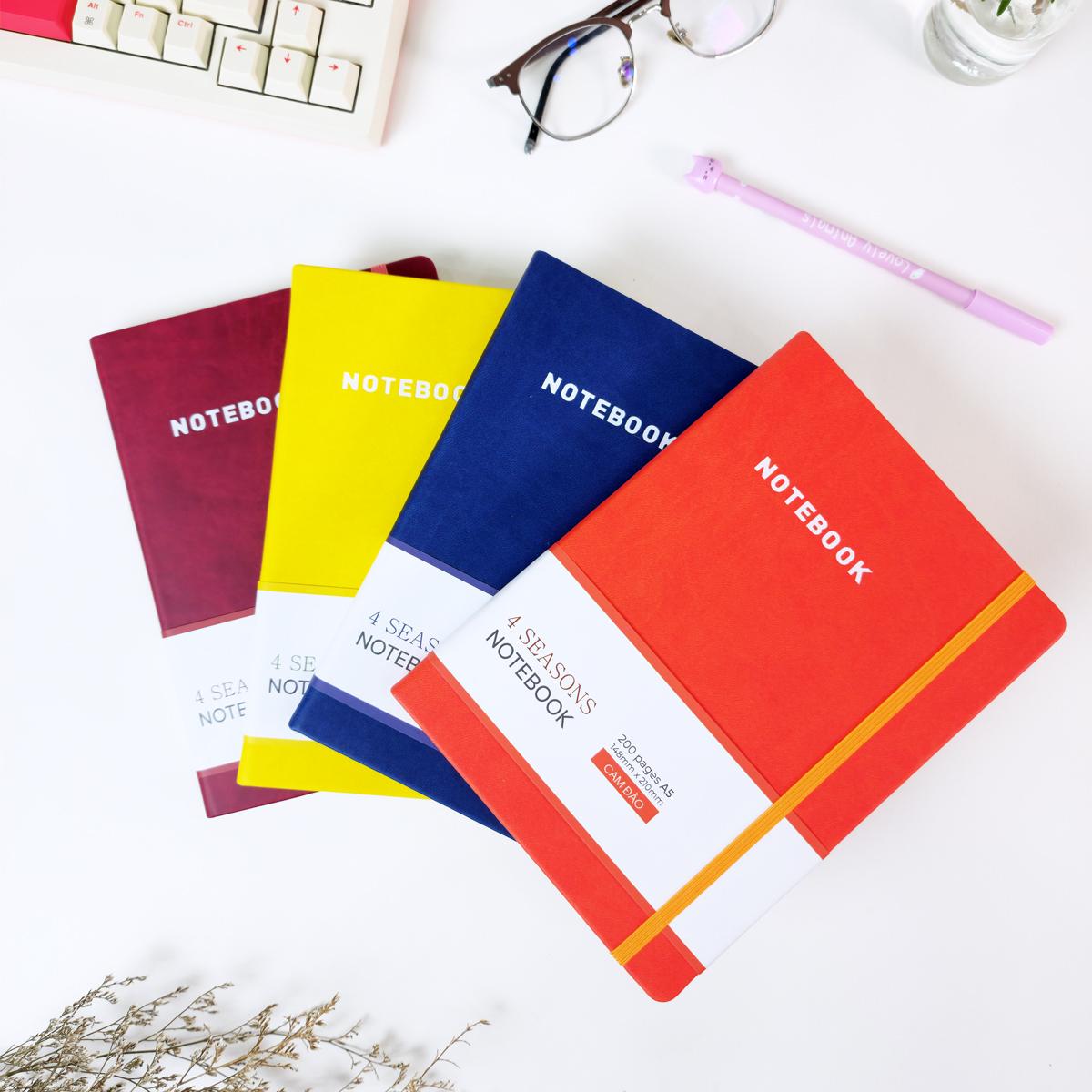 Sổ Bìa Da A5 - Kẻ Ngang 200 Trang 80gsm - 4 Seasons - The Sun 01 - Màu Đỏ Đô - Sản phẩm sử dụng loại giấy láng, mịn, không lóa mắt, phù hợp