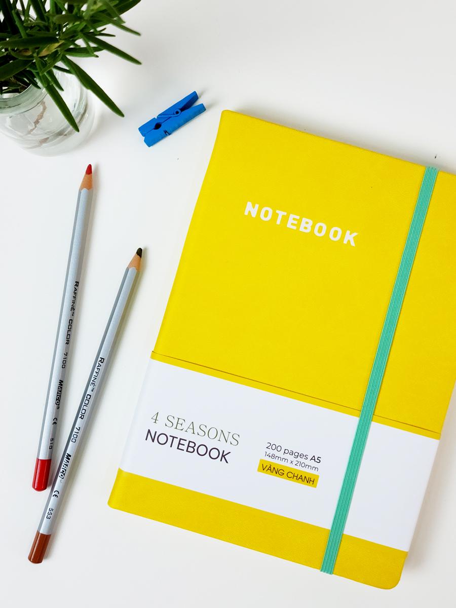Sổ Bìa Da A5 - Kẻ Ngang 200 Trang 80gsm - 4 Seasons - The Sun 02 - Màu Vàng Chanh