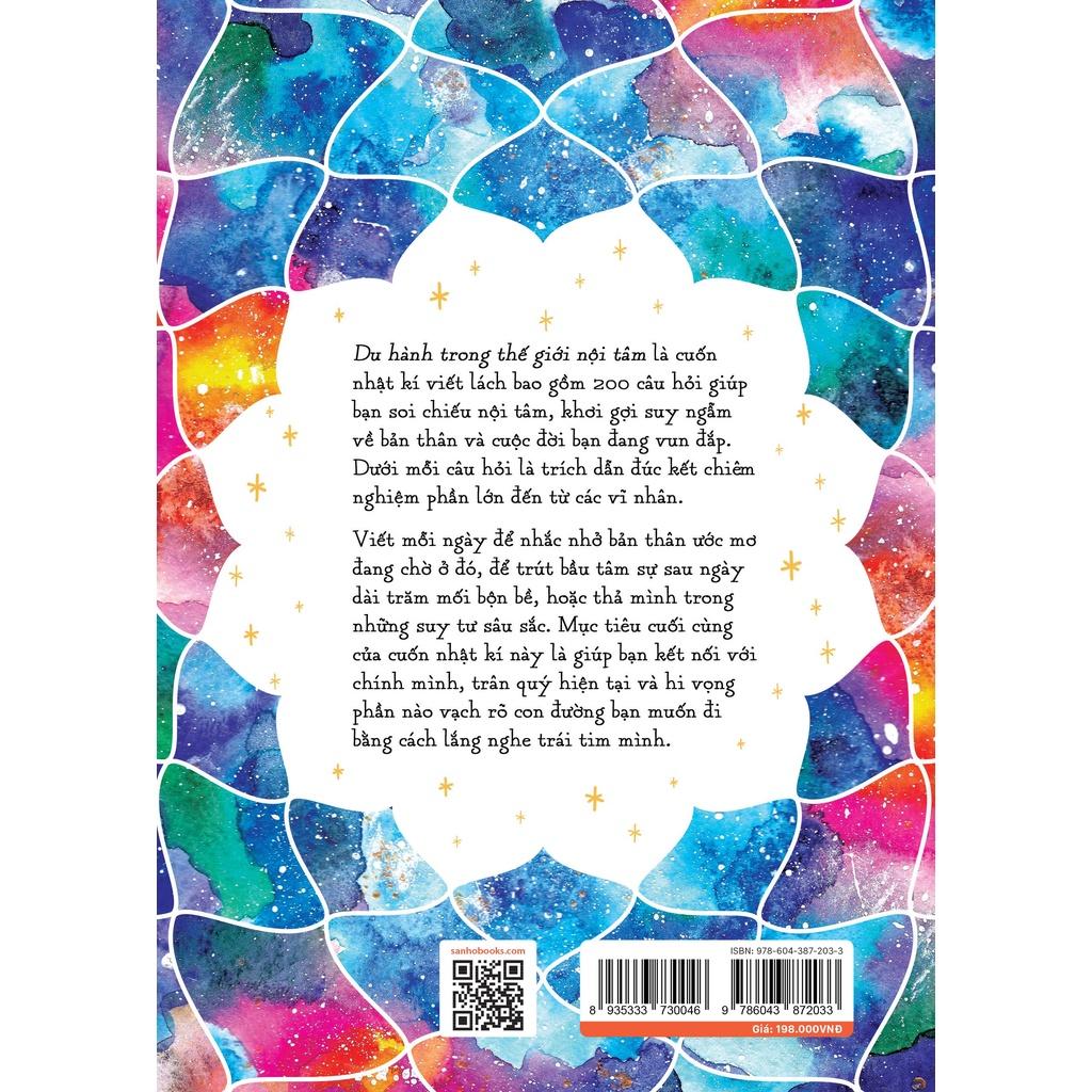 Du hành trong thế giới nội tâm là cuốn nhật kí viết lách bao gồm 200 câu hỏi giúp bạn soi chiếu nội tâm, khơi gợi suy ngẫm về bản thân và cuộc đời bạn đang vun đắp. Dưới mỗi câu hỏi là trích dẫn đúc kết chiêm nghiệm phần lớn đến từ các vĩ nhân.