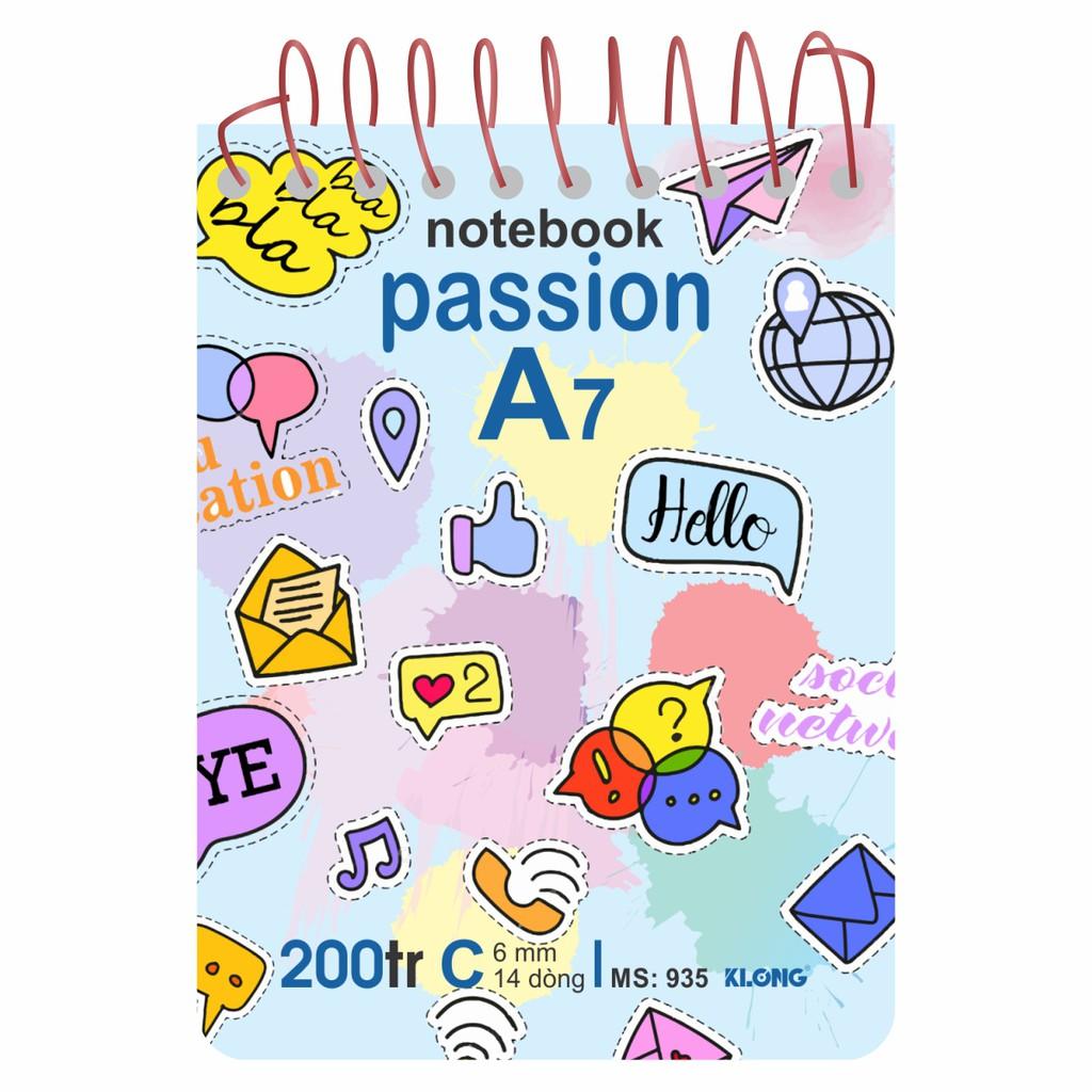 Sổ kẻ ngang lò xo đơn ngang KLONG A7 200 trang 70/76; MS: 935 - Định lượng: 70 g/m2 - Độ trắng: 76% ISO - Số trang: 200 trang - Kích thước: (82 x 110)