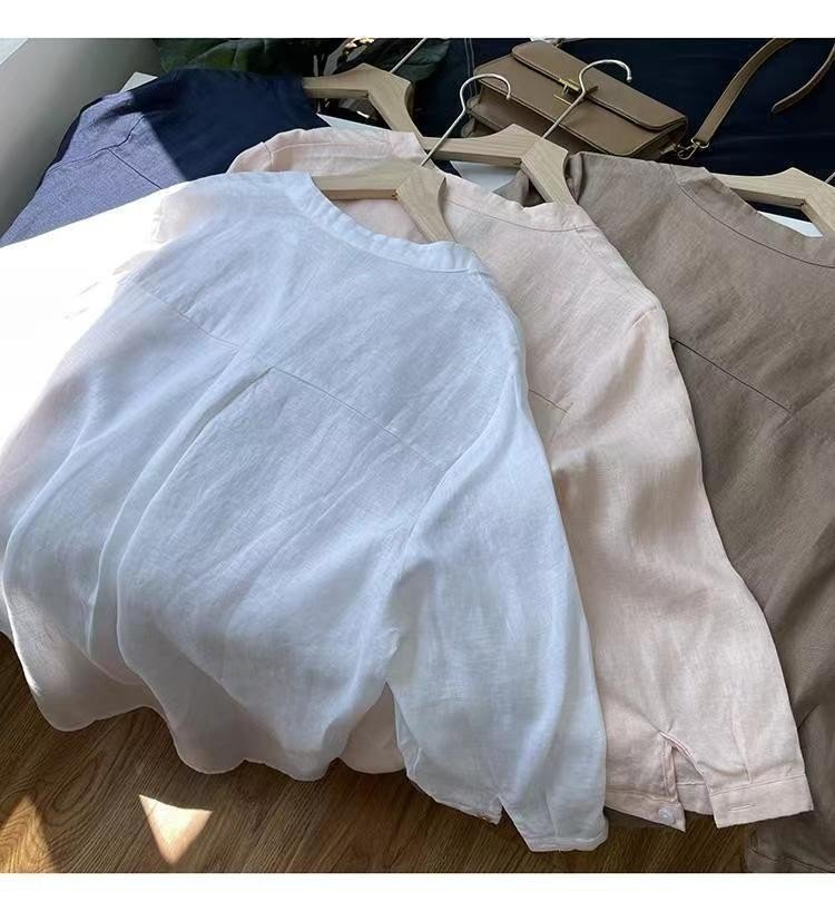 Áo sơ mi nữ Linen tay dài, không túi LA MỘC - LM0122306 - Sơ mi trắng với thiết kế cơ bản và dễ mặc. Điểm nhấn là phần xẻ tay tạo có thể thả
