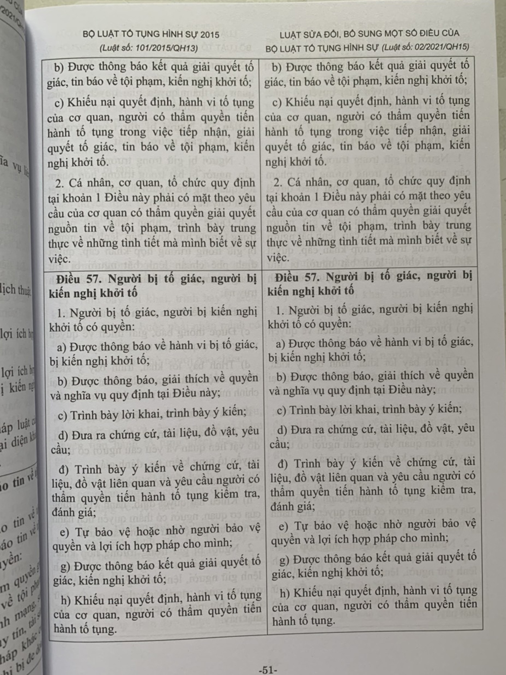 So Sánh – Đối Chiếu Bộ Luật Tố Tụng Hình Sự Năm 2015 (Sửa Đổi, Bổ Sung Năm 2021)