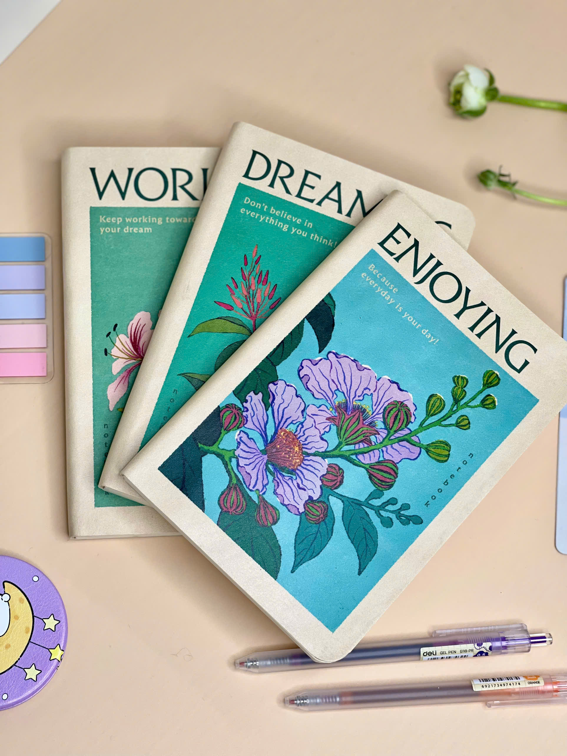 Được tạo ra để cùng bạn lưu giữ từng khoảnh khắc quý giá, mỗi cuốn sổ là một bông hoa dịu dàng, đồng hành cùng bạn trên mọi cung bậc cảm xúc: từ niềm vui, nỗi buồn đến những phút giây tĩnh lặng suy ngẫm...