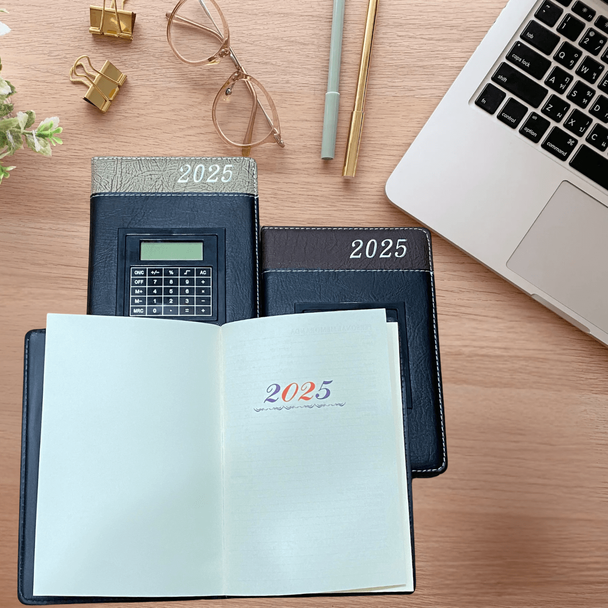Hãy sở hữu ngay sổ da kèm máy tính để bắt đầu năm 2025 tràn đầy năng lượng và hiệu quả!