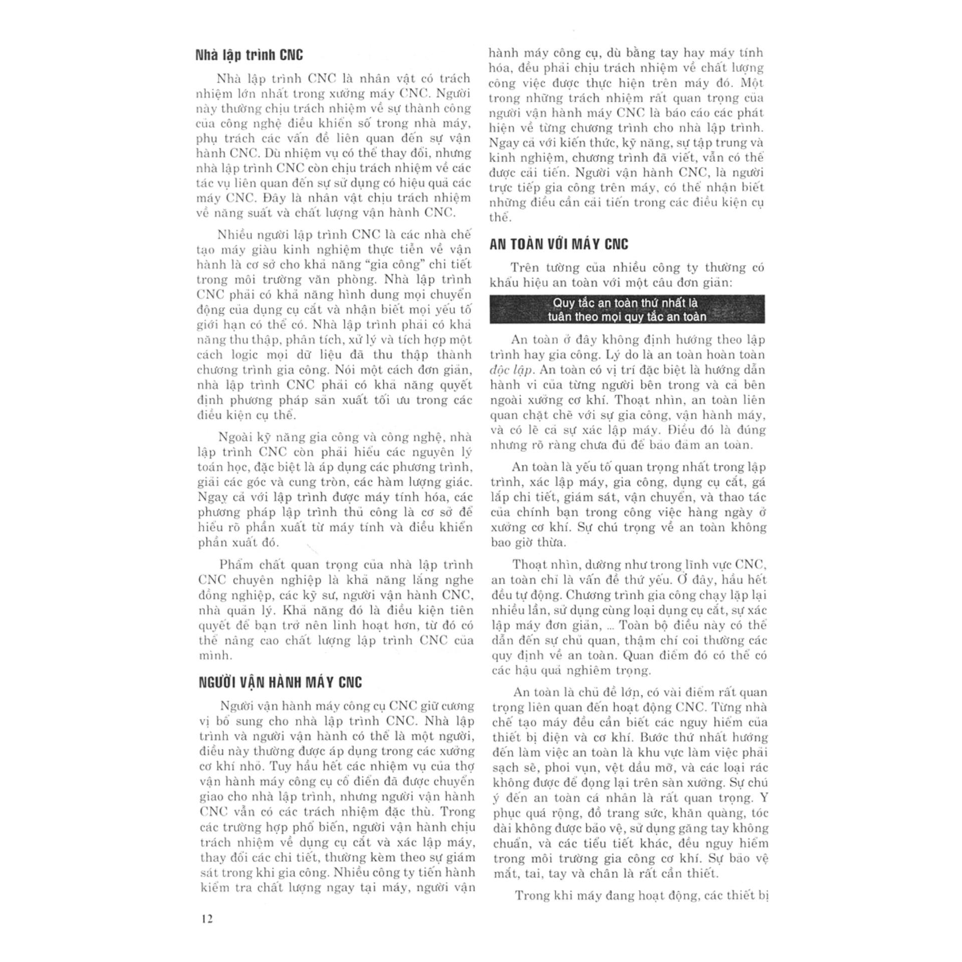 Hướng Dẫn Lập Trình CNC Trên Máy Công Cụ. (Tái bản lần thứ 4) Sách gồm 7 phần, 264 trang, khổ 19 X27 Cm Phần 1: Cơ sở CNC Phần 2: Vận hành máy CNC