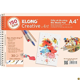 ✨Sổ vẽ KLONG A4+ cao cấp lò xo kép xé 150GSM 30 tờ MS772