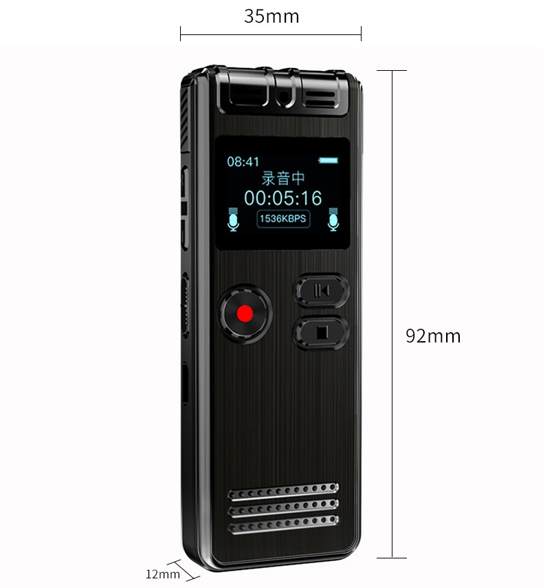 Chất liệu vỏ: Hợp kim kẽm Màn hình: Màn hình màu TFT 1,44 inch Định dạng ghi âm và tốc độ lấy mẫu: Định dạng WAV (32Kbps-1536Kbps) Chất lượng ghi âm: WAV 512Kbps (mặc định)