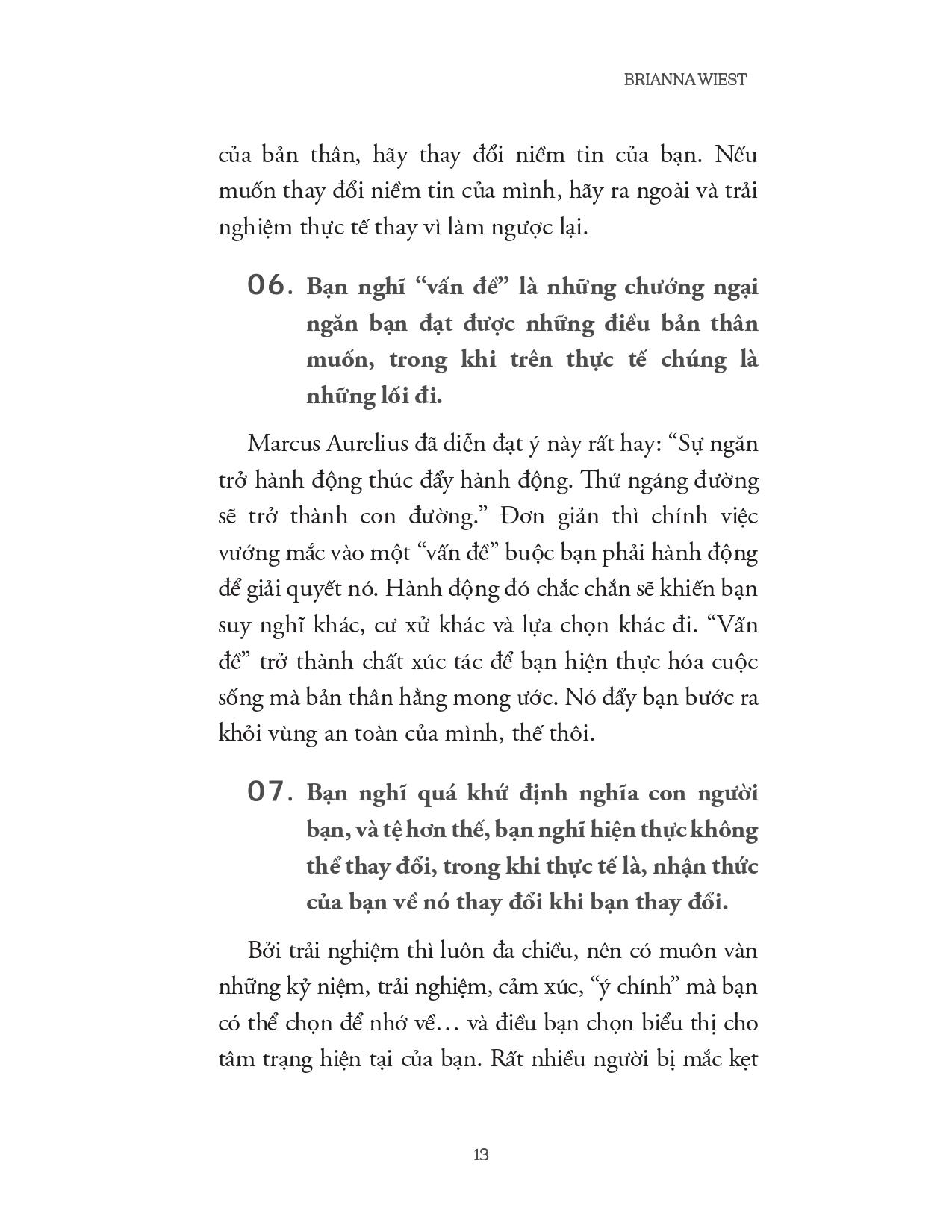 Brianna Wiest là nhà văn, nhà thơ người Mỹ. Cô đã dành phần lớn thời gian trong sự nghiệp viết lách của m.ình để giúp mọi người thúc đẩy tiềm năng thực sự của họ. Sau nhiều năm viết và chia sẻ những hiểu biết sâu sắc về chính hành trình thức tỉnh và chữa lành, cùng những ý tưởng sáng tạo và hữu ích, những cuốn sách của Briana nhanh chóng trở thành hiện tượng toàn cầu, bán được hơn 1 triệu bản và đang được dịch sang hơn 20 ngôn ngữ trên toàn thế giới. Các tác phẩm của cô cũng đồng thời được đăng trên các website nơi mà cô hiện đang là đối tác như Forbes, USA Today, The Huffington Post, và Thought Catalog.