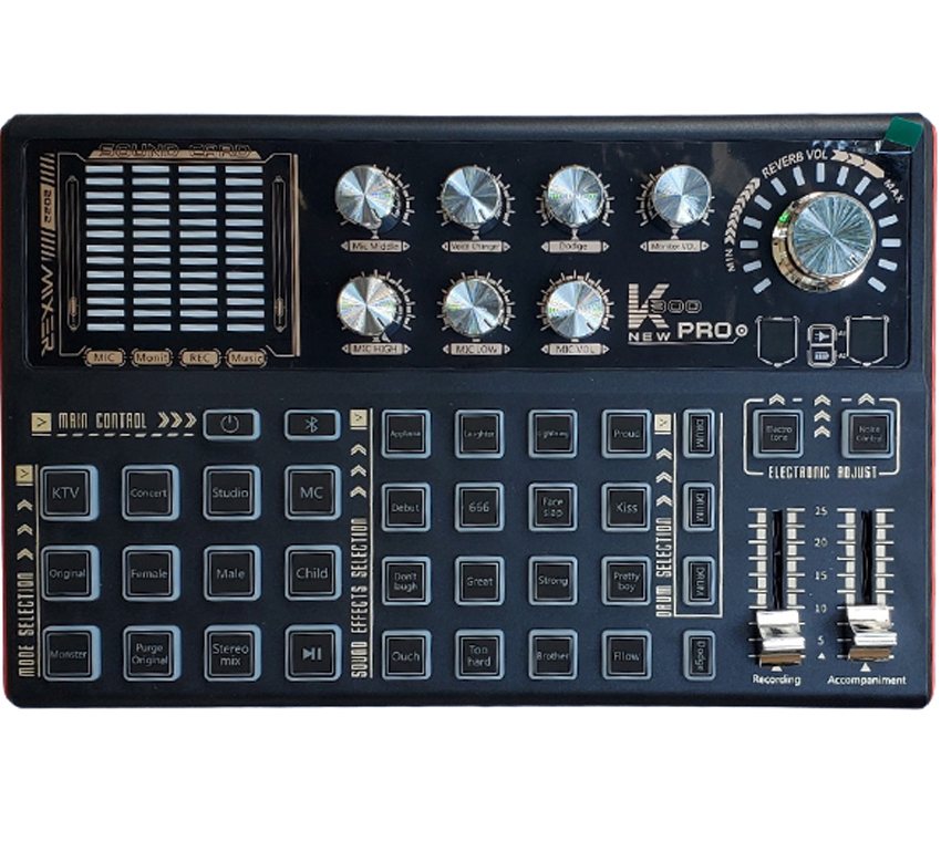 ️ Soundcard hát livestream K300 tích hợp 20 chế độ hiệu ứng khán giả giúp tăng tương tác khi trò chuyện trong buổi livestream: tiếng vỗ tay, tiếng cười, chê bai, quạ kêu, súng bắn,….