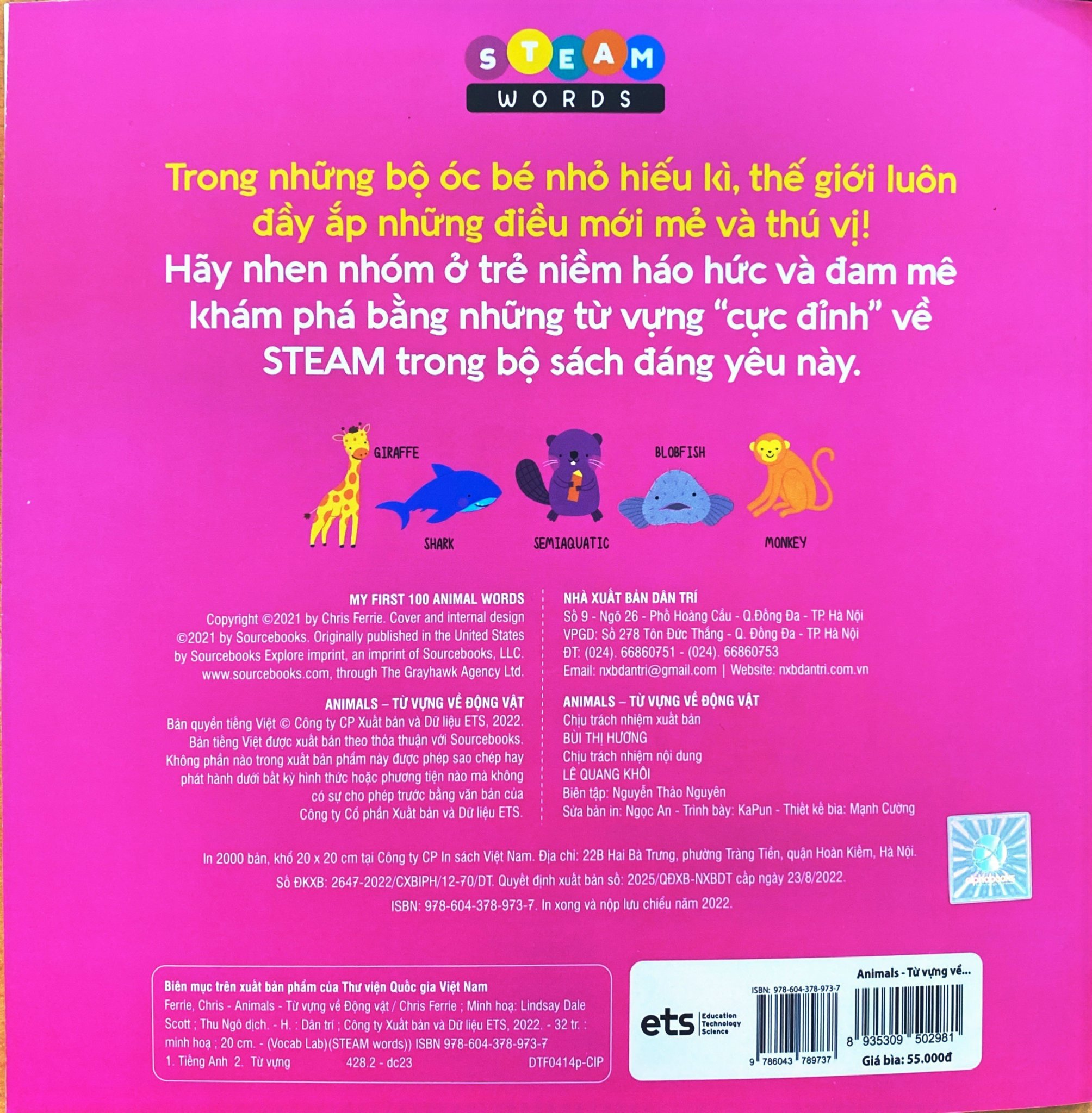 STEAM WORDS là bộ sách cung cấp những từ vựng tiếng Anh cần thiết về các lĩnh vực trên. Bộ sách gồm 10 cuốn, sẽ lần lượt được ra mắt trong năm 2022 này. 5 cuốn sách đầu tiên bao gồm: