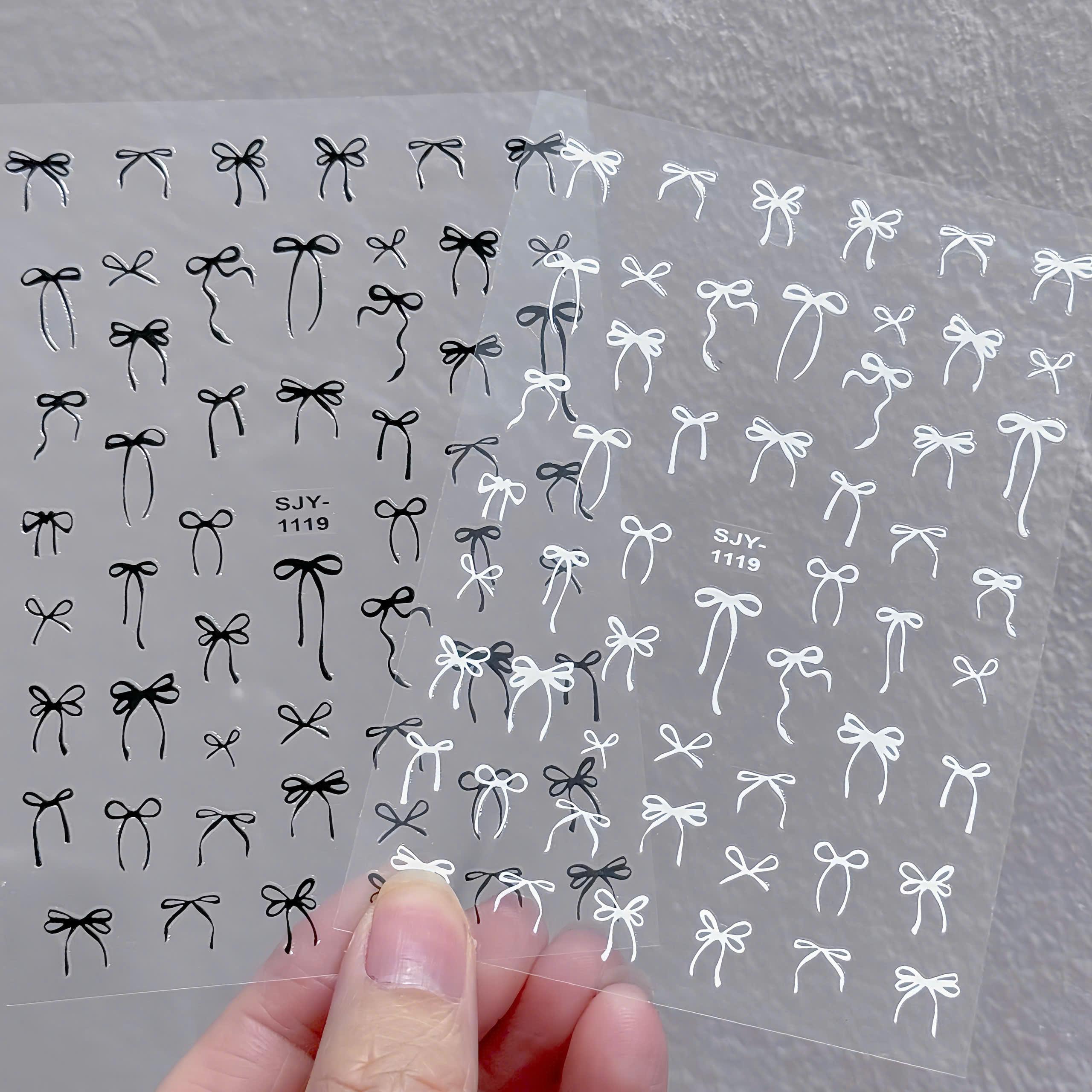 ✨Sticker 3D Nơ Nổi Dài Ngắn Đen Trắng SJY1119 Làm Nail Siêu Xinh, Hình Dán Móng Nơ Ruy Băng Mix Kiểu Phong Cách Điệu Đà Đẹp Mắt Và Tinh Tế