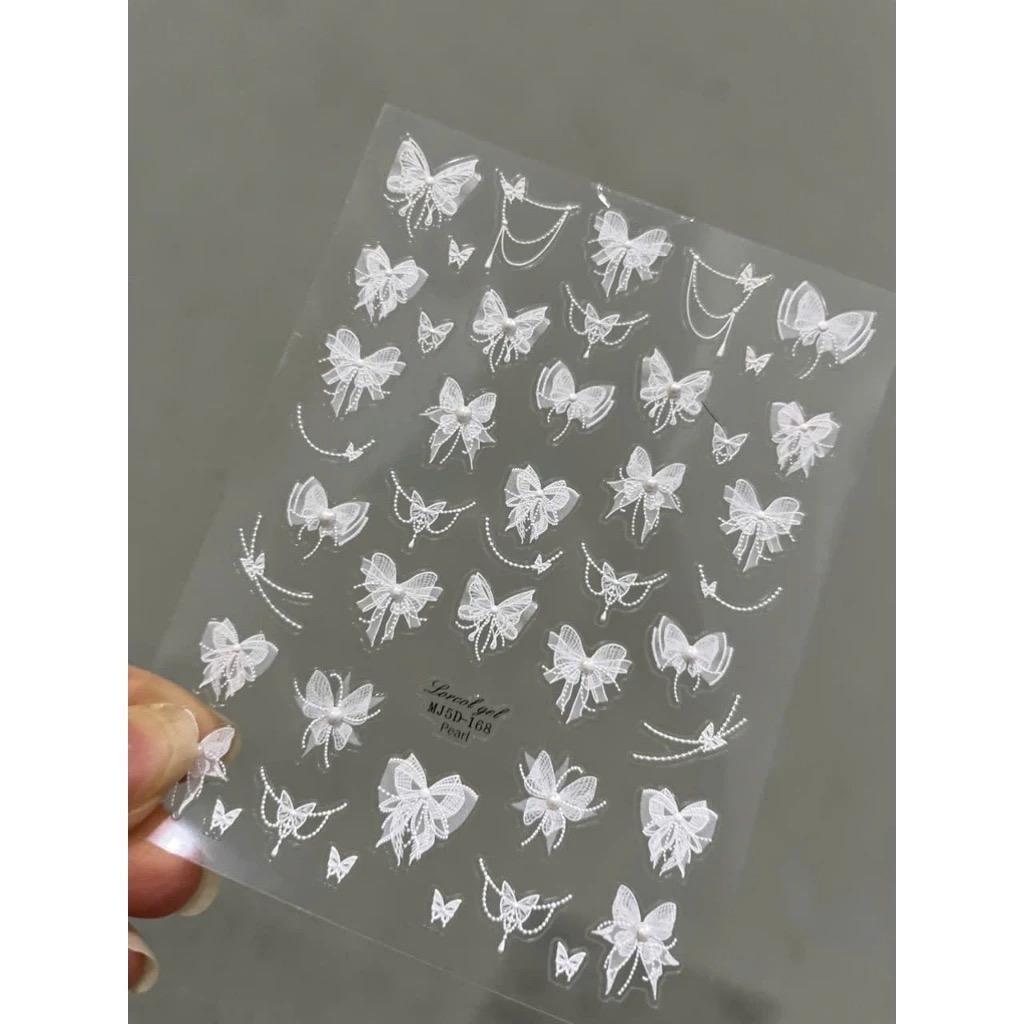 Sticker 5d Ren Nơ Đính Ngọc Hình Cánh Bướm CA6896 Nơ Ren Nổi Đính Đá Trắng Tinh Khôi Miếng Dán Dính Móng Tay Nghệ Thuật Hàn Quốc Sang Trọng Nữ Women Nghệ thuật làm móng