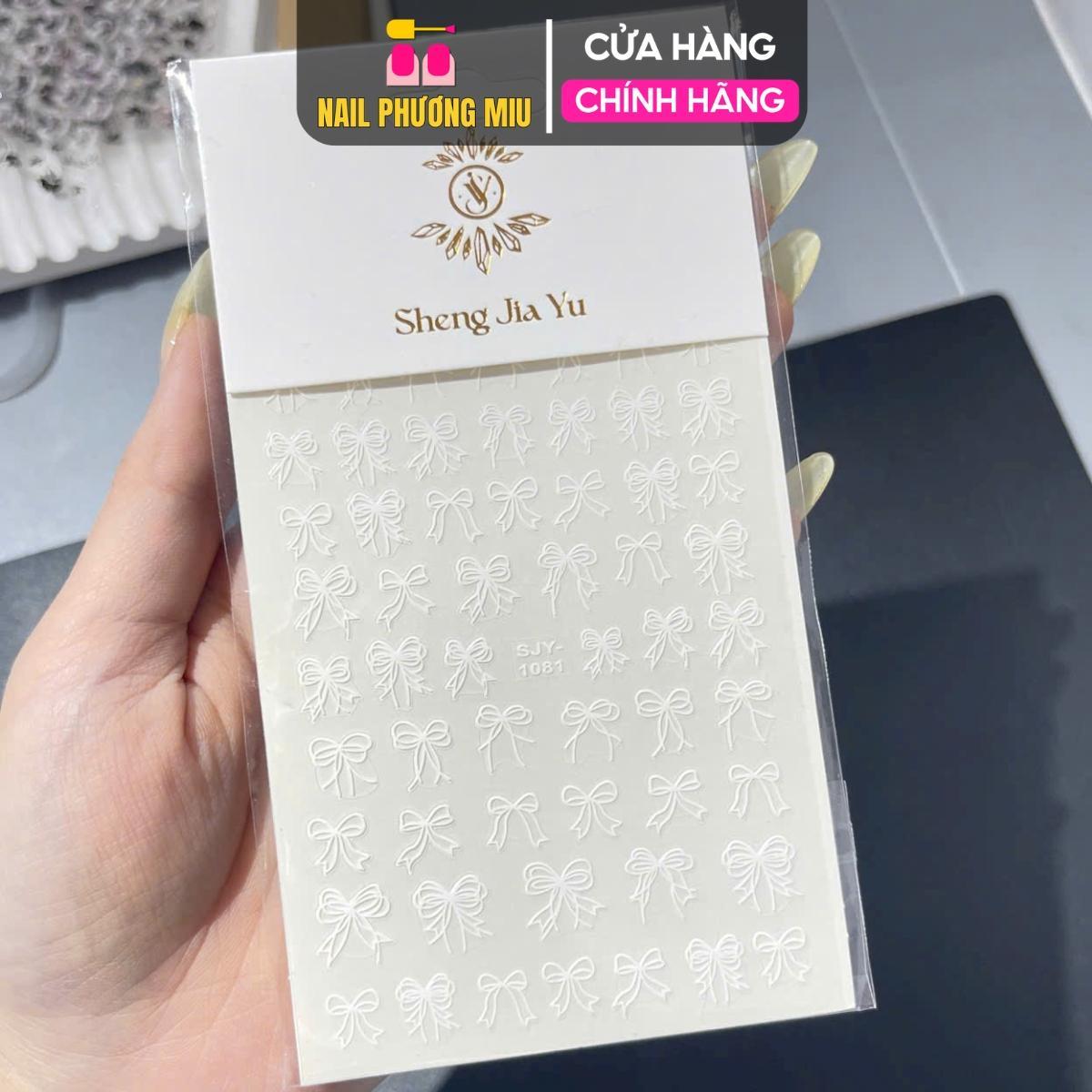 Mua tại TiktokSticker Nơ Trắng Mix SJY1081 Kiểu Hàn Quốc Dán Móng Siêu Xinh, Hình Dán Móng Nơ Sẵn Keo Siêu Dính Siêu Bền Chuyên Dùng Làm Nail Nữ Women Sticker nơ trắng mix SJY1081 Sheng Jia Yu là phụ kiện nail được thiết kế theo phong cách Hàn Quốc, mang đến vẻ đẹp nhẹ nhàng, tinh tế nhưng không kém phần nổi bật. Với chất liệu mỏng nhẹ, dẻo dai, sản phẩm giúp bạn dễ dàng tạo nên những bộ móng độc đáo, sang trọng mà không mất quá nhiều thời gian và công sức. Đặc biệt, sticker đã có sẵn keo siêu dính giúp việc dán lên móng nhanh chóng, bền lâu mà không cần thêm keo hỗ trợ. Đây là lựa chọn hoàn hảo cho cả người mới bắt đầu và thợ nail chuyên nghiệp. 2. Đặc điểm nổi bật của sticker nơ trắng mix SJY1081 Thiết kế Hàn Quốc nhẹ nhàng, thanh lịch