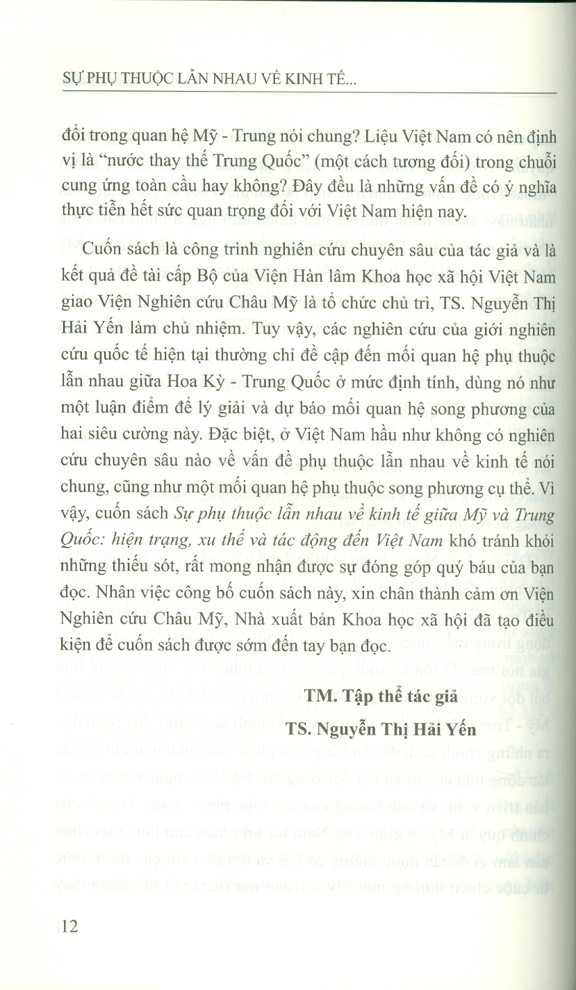 ✨Sự Phụ Thuộc Lẫn Nhau Về Kinh Tế Giữa Mỹ Và Trung Quốc: Hiện Trạng, Xu Thế Và Tác Động Đến Việt Nam (Sách chuyên khảo) - Viện Hàn lâm Khoa học Xã hội Việt Nam - Viện Nghiên cứu Châu Mỹ; TS. Nguyễn Thị Hải Yến chủ biên
