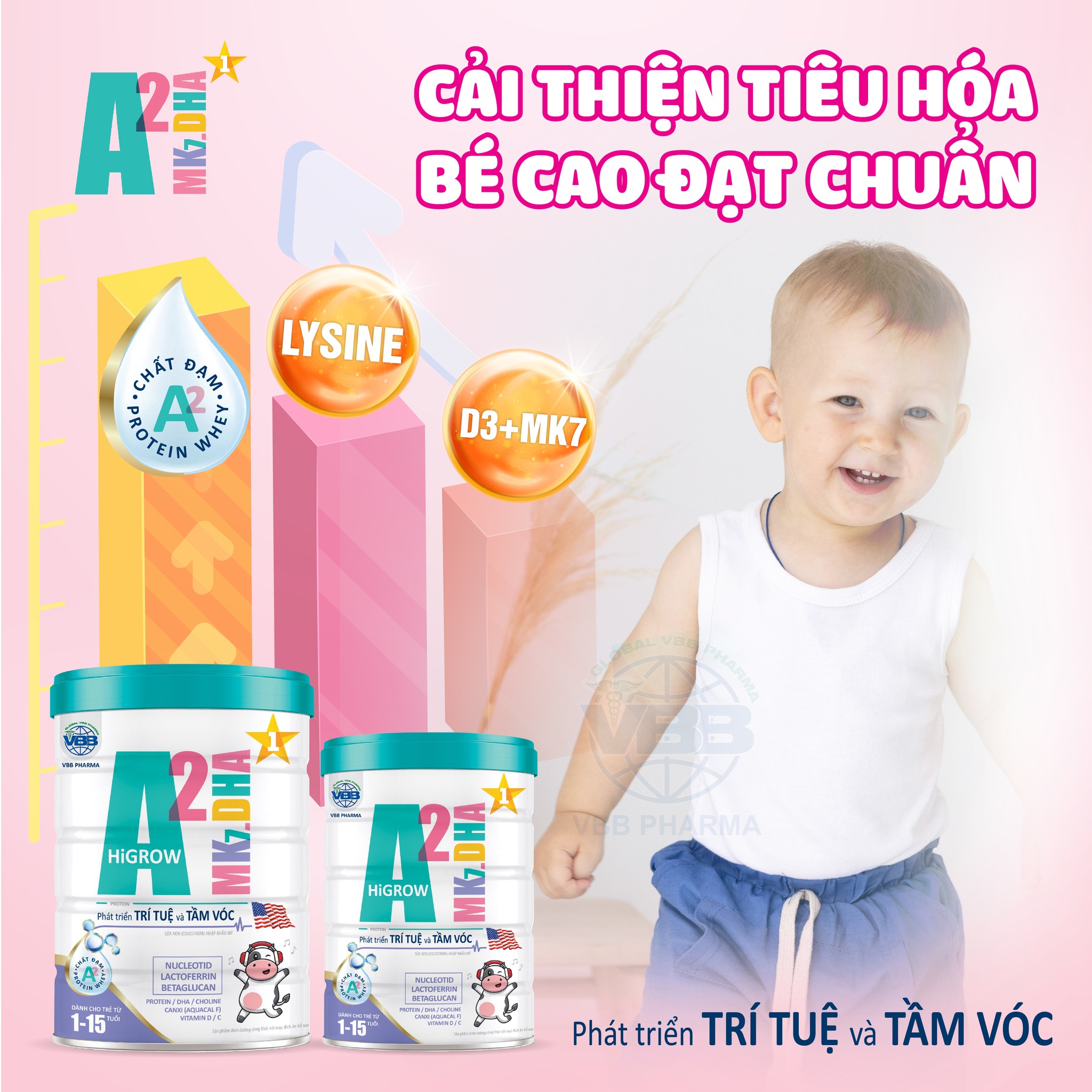 A2 Mk7.DHA HiGrow- DINH DƯỠNG ĐẶC CHẾ CHO BÉ THẤP CÒI