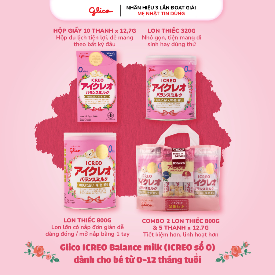 - Dinh dưỡng cân bằng giúp nâng niu cơ thể non yếu của bé Trong giai đoạn từ 0-12 tháng đầu đời, cơ thể của bé yêu chưa hoàn thiện & còn rất non yếu. Do đó, Glico ICREO số 0 ra đời với sứ mệnh đảm bảo cung cấp cân bằng & đầy đủ dinh dưỡng giúp trẻ hấp thu tối đa dưỡng chất một cách an toàn nhất. Glico ICREO số 0 sở hữu công thức cân bằng & thân thiện với cơ thể của trẻ từ 0-12 tháng tuổi: