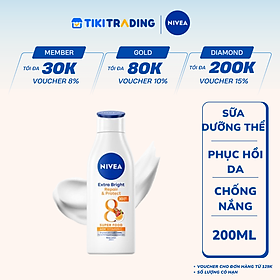 Mua tại TiktokSữa Dưỡng Thể Dưỡng Trắng NIVEA Giúp Phục Hồi & Chống Nắng Spf 30 (200Ml) - 88310 được bổ sung thêm collagen giúp phục hồi các vấn đề về da do nắng gây ra đồng thời tăng cường thêm chỉ số SPF30 & PA++ giúp bảo vệ da khỏi tác hại tia UVA/UVB mang lại cho bạn làn da trắng sáng, mịn màng cùng hương thơm nhẹ nhàng, quyến rũ.