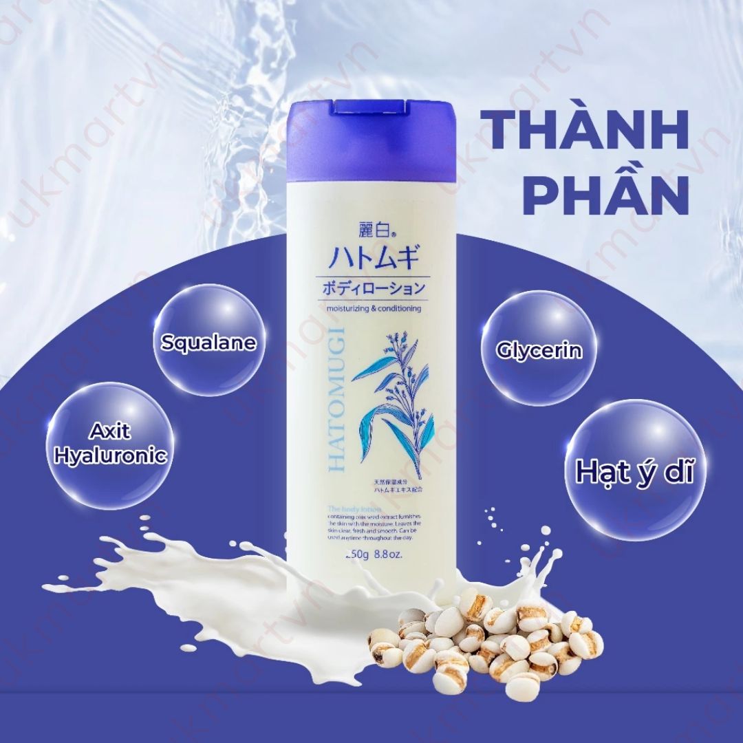Công dụng: Giúp da luôSữa dưỡng thể chống nắng Reihaku Hatomugi được cung cấp từ hạt ý dĩ , Sodium Hyaluronate ( thành phần giữ ẩm tuyệt vời cho làn da căng mượt ) và