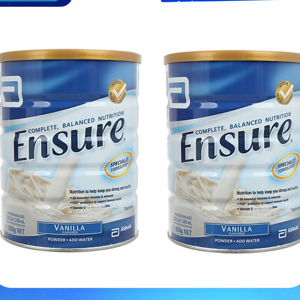 Sữa bột Ensure Úc 850g Giới thiệu Ensure là một nhãn hiệu của Abbott Hoa Kỳ một trong những dòng sữa bột cung cấp và bổ sung nguồn dưỡng chất mỗi ngày cho trẻ em và người lớn. Sữa bột Ensure là nguồn dinh dưỡng hoàn toàn cân bằng, sử dụng bổ sung giữa các bữa ăn. Sản phẩm còn rất tốt cho bệnh nhân có chế độ ăn bị thay đổi, có nguy cơ suy dinh dưỡng, giảm cân, hoặc cần phục hồi sức khỏe do bệnh tật hoặc phẫu thuật, hoặc dư lượng khẩu phần ăn thấp. Sản phẩm bán tại Tiki luôn là mẫu mới nhất, hình ảnh thực tế sản phẩm được cập nhật mới theo từng lô hàng nhập Thành phần Thành phần dinh dưỡng Khoáng chất: Calcium, phosphate, megnesium chloride, ferrous sulphate, zinc sulphate, potassium iodide. Vitamin: Vitamin C, E, B6, B1, B2, A, D, B12, folic acid, Beta-carotene, niacin, ... Sản phẩm bán tại Tiki luôn là mẫu mới nhất, hình ảnh thực tế sản phẩm được cập nhật mới theo từng lô hàng nhập Đặc điểm nổi bật