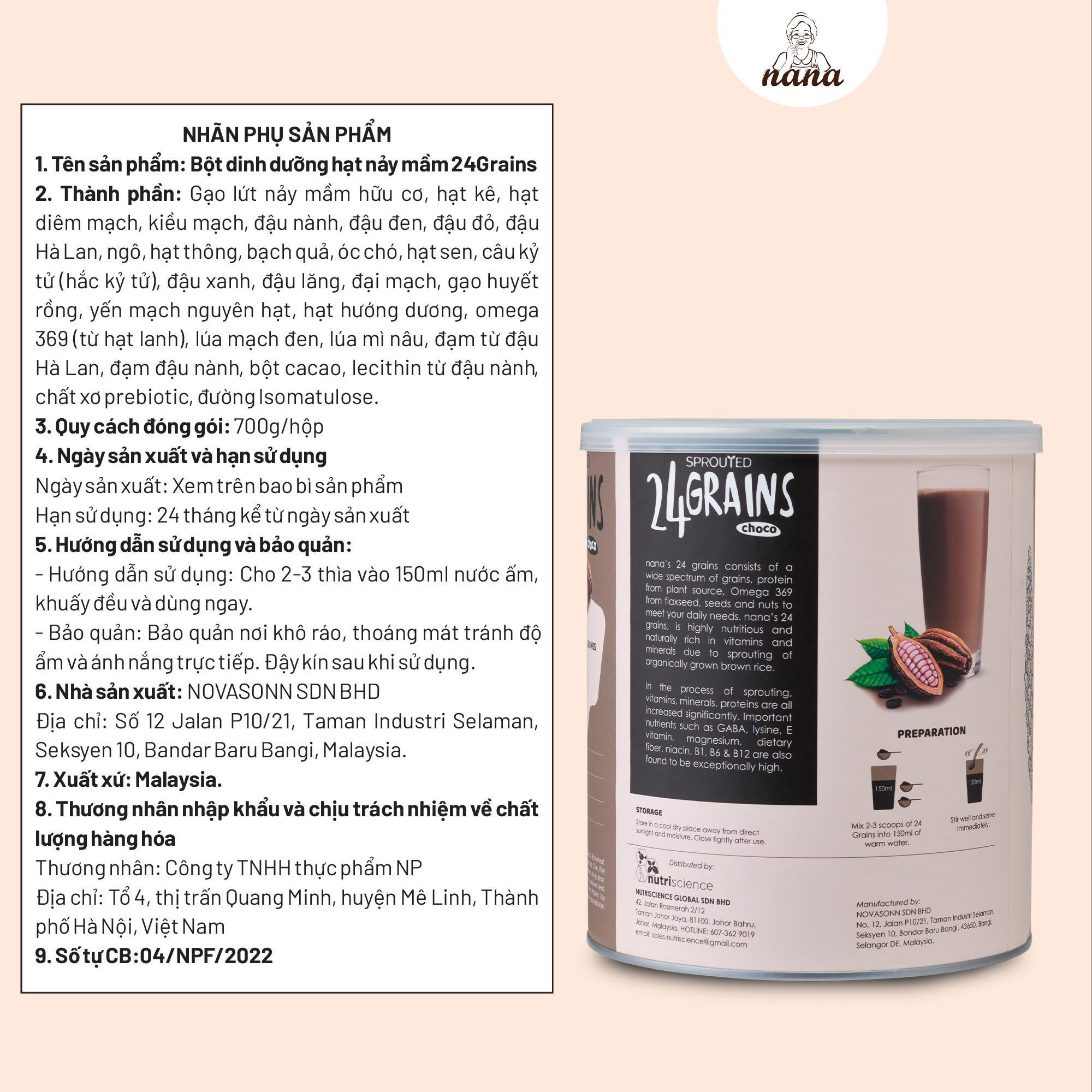 ✨Sữa Hạt 24Grains 700g x4 Hộp (2.8kg) Vị Socola Tự Nhiên Cho Trẻ Từ 3 Tuổi & Người Lớn Bổ Sung Dinh Dưỡng Toàn Diện