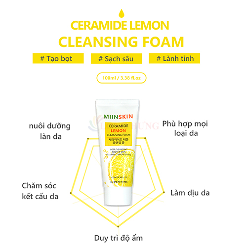 Sữa rửa mặt chanh MIINSKIN Ceramide Lemon Cleansing Foam là sản phẩm làm sạch da hiệu quả. Với chiết xuất chanh tươi và Ceramide, sản phẩm giúp loại bỏ bụi bẩn, dầu thừa, đồng thời