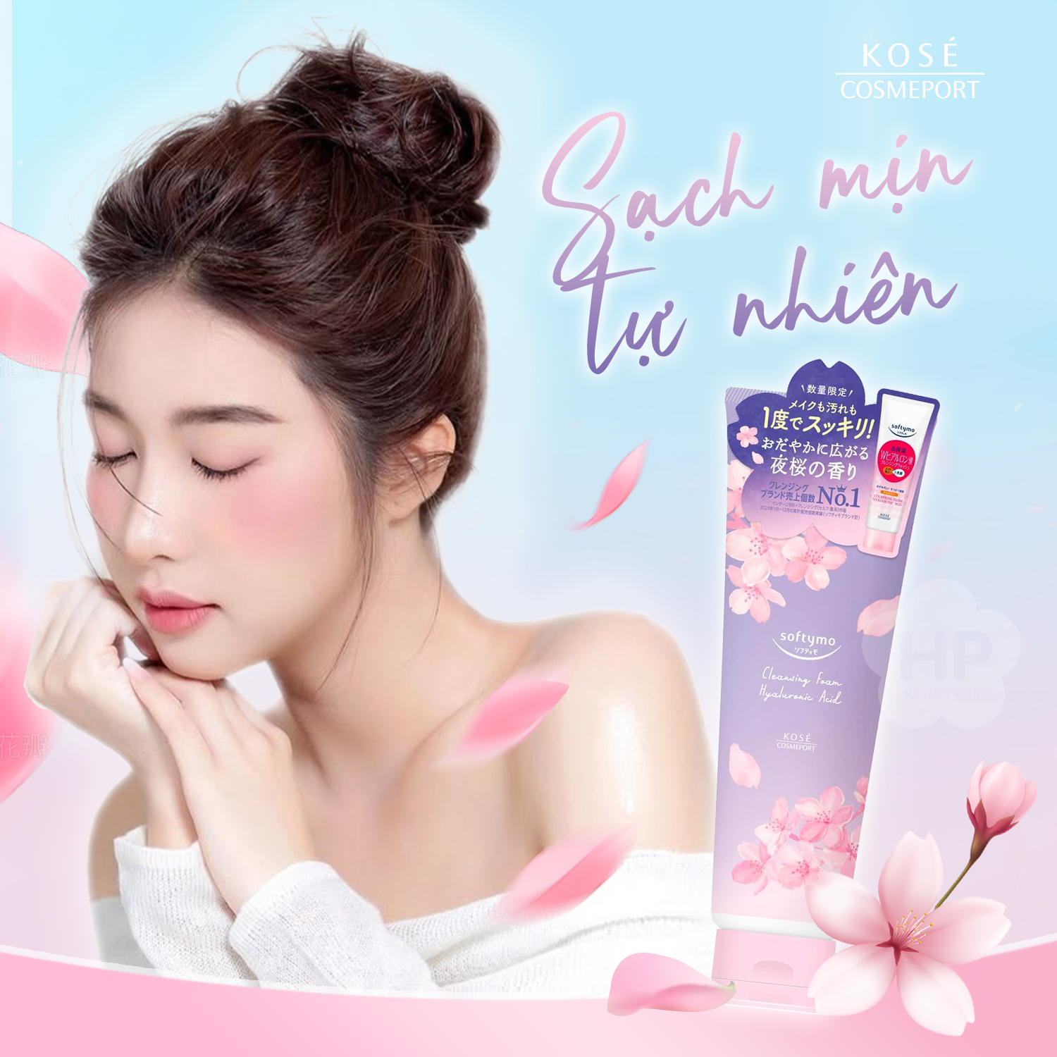✨Sữa Rửa Mặt Tẩy Trang Hương Hoa Anh Đào Kose Softymo Cleansing Foam Hyaluronic Acid (190 G)