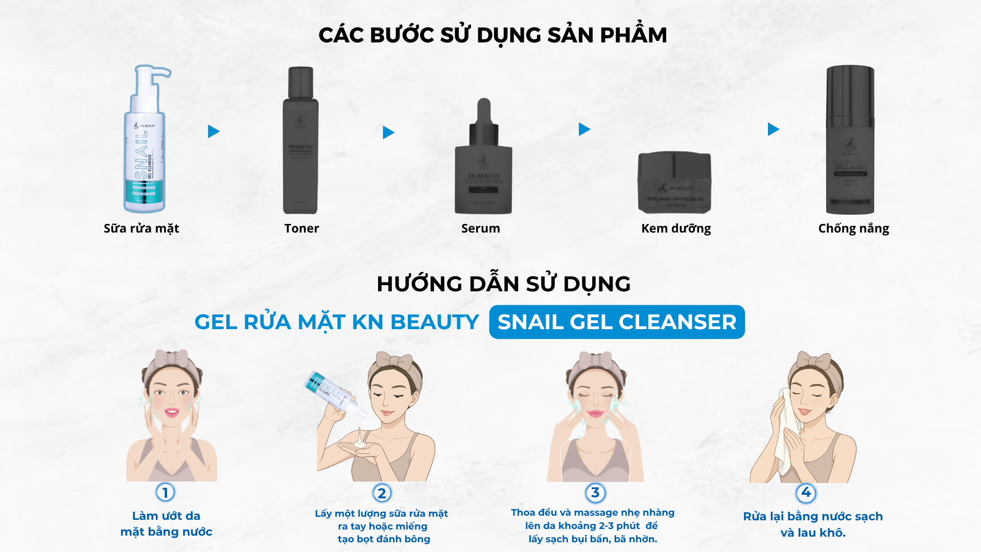 Mua tại TiktokGel Rửa Mặt Trắng Da Ngừa Mụn KN Beauty SNAIL GEL CLEANSER 120ml Gel rửa mặt KN Beauty SNAIL GEL CLEANSER giúp làm sạch nhờn và chất bẩn nhờ bọt mịn nhẹ nhàng len lỏi trong từng lỗ chân lông. Nguồn dưỡng chất tự nhiên dịch chiết ốc sên đến từ Châu Âu giúp da trở nên trẻ trung và săn chắc, thành phần lô hội dưỡng ẩm vượt trội và tràm trà ngăn ngừa mụn hiệu quả mang đến làn da mịn màng, trắng sáng. CÔNG DỤNG: Gel rửa mặt Sáng Da Snail Gel Cleaner KN Beauty 120ML là sản phẩm chăm sóc da hiệu quả trong việc làm sạch và cải thiện làn da.