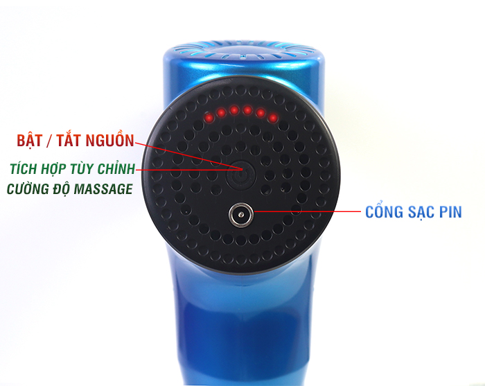 Nhấn vào nút nguồn để thay đổi cường độ massage, mỗi nhịp ấn tăng 1 mức