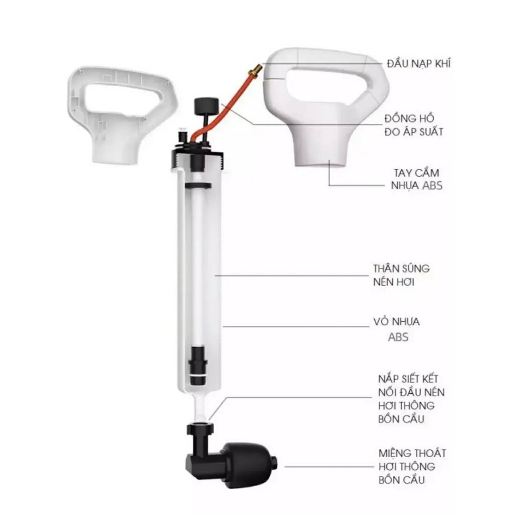 Dụng cụ thông tắc cống, bồn cầu khí nén có thiết kế nhỏ gọn hiện đại, dễ sử dụng giúp bạn đánh bật tóc, giấy, rác, các loại chất thải gây tắc nghẽn bồn cầu,