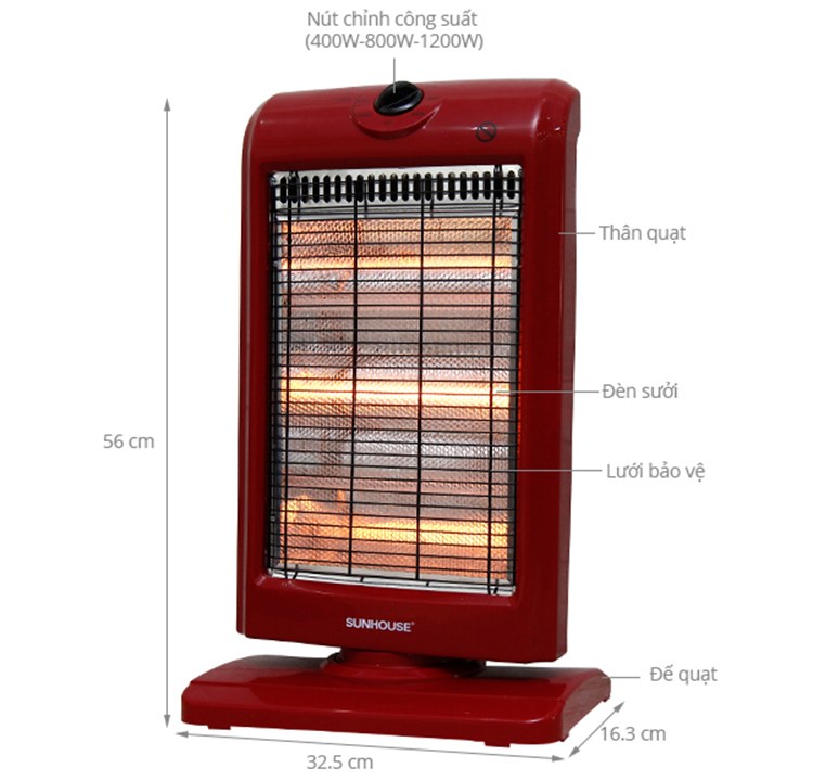 Sưởi Điện 3 Bóng Halogen Sunhouse Shd7016 (1000W) - Đỏ Đen là một trong những thiết bị sưởi ấm không thể thiếu tại gia đình trong mùa đông, Sản phẩm sử dụng đèn hồng ngoại siêu bền, tỏa nhiệt đều, không gây khó thở và khô da, đảm bảo an toàn cho người sử dụng,