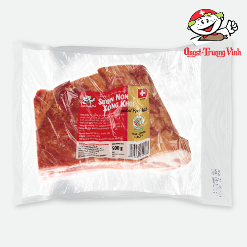 Với sản phẩm tươi sống, trọng lượng thực tế có thể chênh lệch khoảng 10%. Sườn non xông khói cắt khúc 500g là sản phẩm được sản xuất từ những bẹ sườn non loại 1