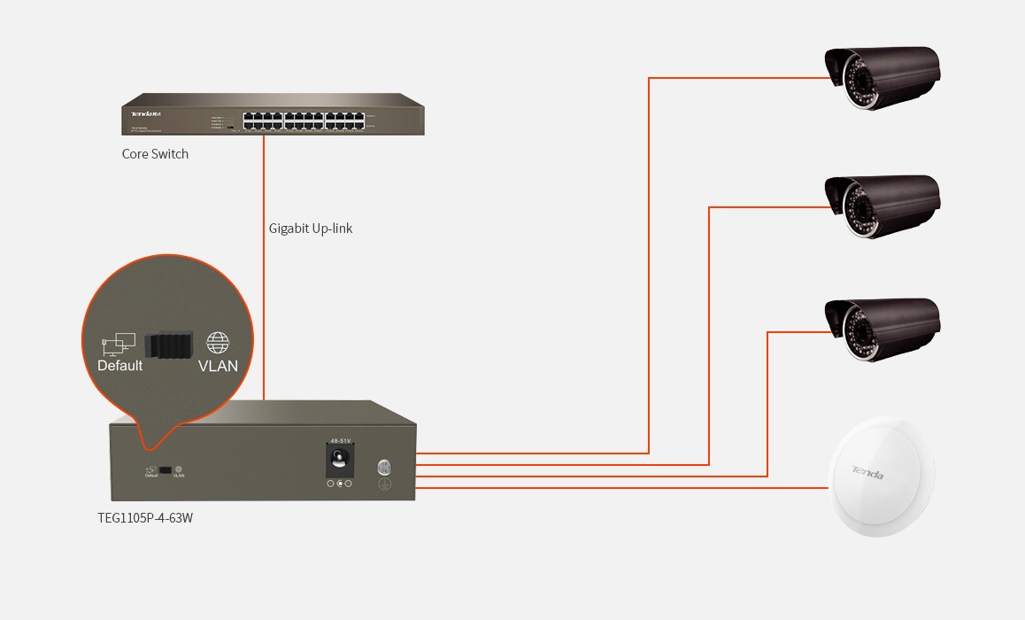 - TEF1106P-4-63W là switch PoE unmanaged với 2 cổng uplink, được thiết kế riêng bởi Tenda - Tương thích với PoE chuẩn IEEE 802.3at/af , tự động phát hiện các thiết bị sử dụng PoE