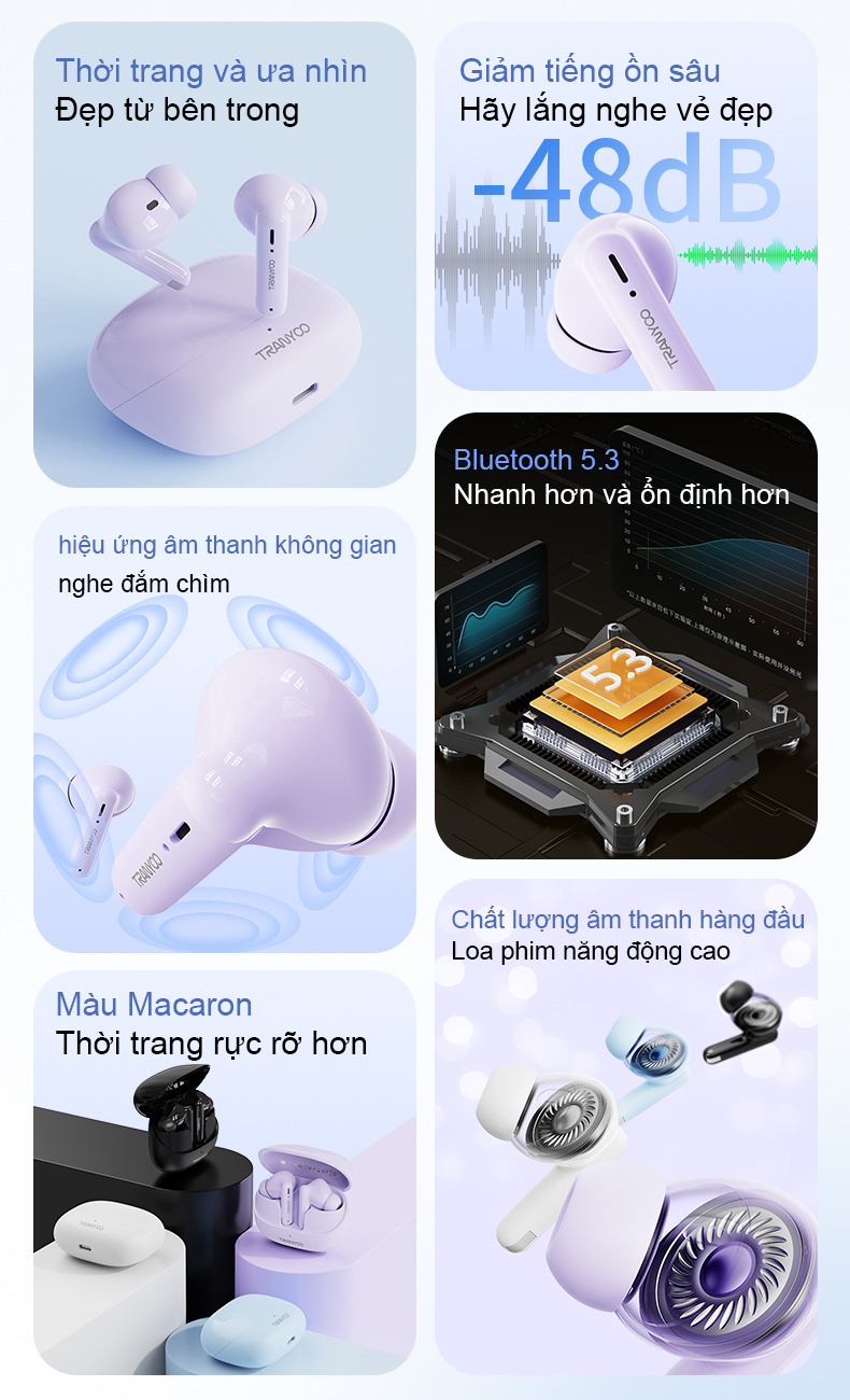 ✨Tai nghe Bluetooth 5.3 TRANYOO T-M26, khử tiếng ồn thông minh, thiết kế đẹp, sang trọng, pin trâu - Hàng chính hãng