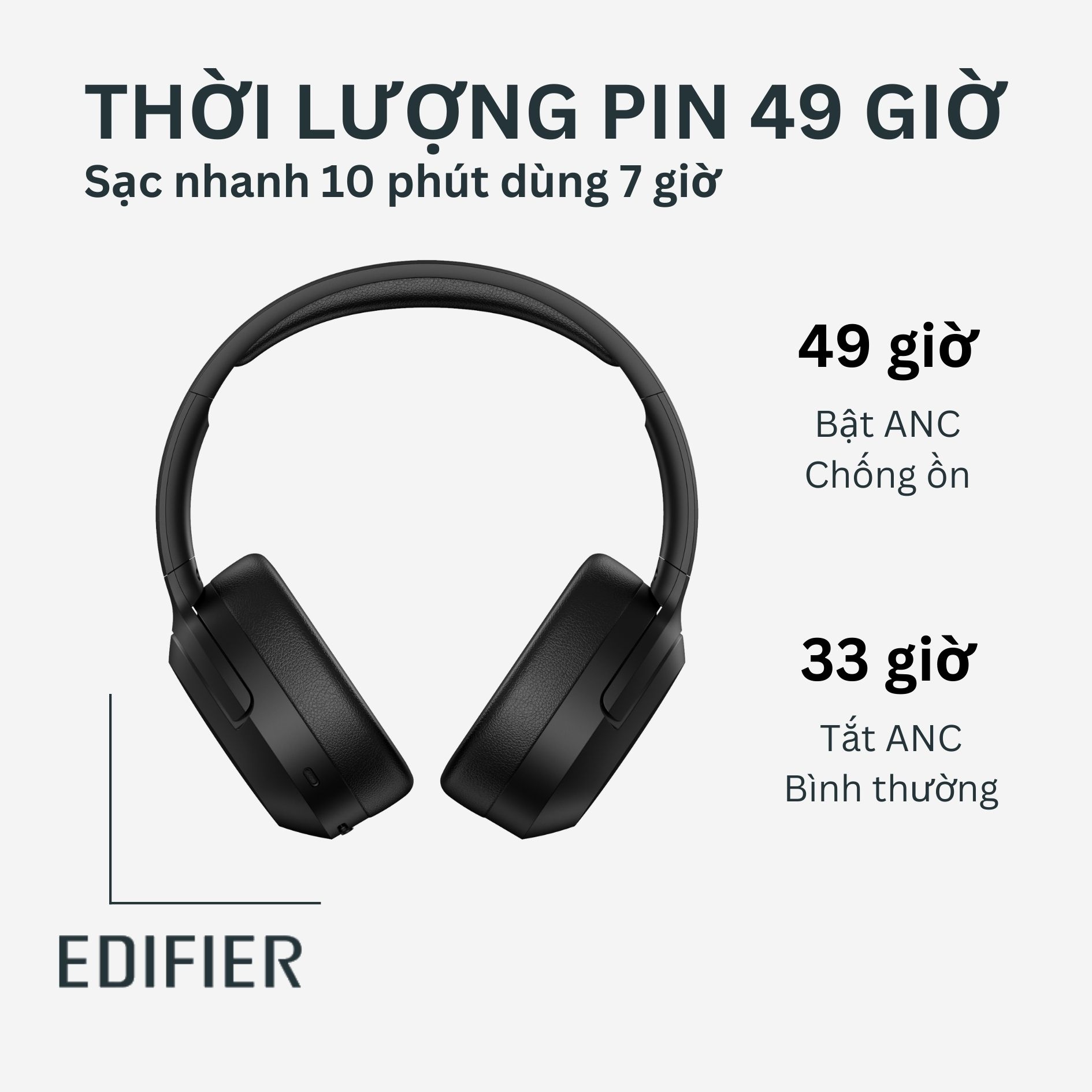 TAI NGHE EDIFIER W820NB/PLUS BLUETOOTH KHÔNG DÂY là một chiếc tai nghe chống ồn chủ động mới được ra mắt bởi thương hiệu âm thanh Edifier. Chiếc tai nghe này được trang bị nhiều tính năng hiện đại, bao gồm chống ồn chủ động hiệu quả, chất lượng âm thanh Hi-Res Audio và thời lượng pin dài.   CAM KẾT Sản phẩm chính hãng từ Edifier Việt Nam Phân phối trực tiếp tại Việt Nam qua Công ty DALITO Phiên bản quốc tế, ngôn ngữ tiếng Anh Bảo hành đổi mới toàn diện trong 12 tháng (Đối với lỗi từ nhà sản xuất) THIẾT KẾ TAI NGHE EDIFIER W820NB PLUS • Thẩm mỹ: Thiết kế trẻ trung và hiện đại • Độ bền: Làm từ chất liệu cao cấp, mang đến cảm giác thoải mái khi đeo. • Độ hoàn thiện cao   CHẤT ÂM TAI NGHE EDIFIER W820NB PLUS • Chi tiết và chính xác • Dải tần rộng • Âm bass mạnh mẽ • Âm trung rõ ràng • Âm cao chi tiết   TÍNH NĂNG NỔI BẬT TAI NGHE EDIFIER W820NB PLUS • Chống ồn chủ động hybrid hiệu quả với độ sâu lên đến -43dB • Kết nối ổn định với Bluetooth 5.2 • Chất lượng âm thanh Hi-Res Audio  • Edifier W820NB Plus có thời lượng pin lên đến 49 giờ. • Thiết kế trẻ trung và hiện đại.  • Làm từ chất liệu cao cấp, mang đến cảm giác thoải mái khi đeo. • Khả năng xuyên âm, giúp bạn nghe được âm thanh xung quanh mà không cần tháo tai nghe ra • Đàm thoại tốt nhờ micrô tích hợp. Micrô này có khả năng lọc tiếng ồn, giúp bạn nghe rõ giọng nói của người khác. • Chơi game độ trễ thấp: 0,08 giây   HƯỚNG DẪN SỬ DỤNG TAI NGHE EDIFIER W820NB PLUS   ĐIỀU KHIỂN TRÊN TAI NGHE EDIFIER W820NB PLUS • Điều khiển âm lượng Để tăng âm lượng, nhấn nút +.  Để giảm âm lượng, nhấn nút -. •Thay đổi bài hát Chuyển sang bài hát tiếp theo, nhấn nút + và giữ.  Chuyển về bài hát trước đó, nhấn nút - và giữ. •Trả lời/kết thúc cuộc gọi Trả lời cuộc gọi, nhấn nút nguồn.  Kết thúc cuộc gọi, nhấn nút nguồn một lần nữa. •Từ chối cuộc gọi Từ chối cuộc gọi, nhấn và giữ nút đa chức năng trong khoảng 3 giây. • Chuyển chế độ Chống ồn ANC - Xuyên âm - Chơi Game Ấn nút chức năng 1 lần • Tắt tai nghe Ấn và giữ nút nguồn tầm 5s đến khi đèn led màu đỏ • Bật bluetooth Khi tai nghe đang tắt, ấn và giữ nút nguồn tầm 8s đến khi đèn led xanh lá cây và xay lam nháy nhanh liên tục   CỔNG KẾT NỐI TAI NGHE EDIFIER W820NB PLUS • Bluetooth(Đầu vào): Kết nối máy tính, điện thoại • Kết nối dây type-C: Kết nối máy tính qua cổng USB   ĐÈN LED CHỈ THỊ • Xanh da trời và xanh lá cây nháy liên tục: Chờ pairing Bluetooth • Xanh da trời nháy chậm: Kết nối bluetooth thành công   THÔNG SỐ KỸ THUẬT TAI NGHE EDIFIER W820NB PLUS • Thương hiệu: Edifier  • Xuất xứ thương hiệu: Canada  • Nhập khẩu & Phân phối: DALITO VIỆT NAM  • Mã sản phẩm: Loa Edifier W820NB PLUS • Loại tai nghe: Tai nghe chụp tai • Kết nối: Bluetooth 5.2 • Codec: LDAC, SBC • Driver: Dynamic 40mm • Tần số đáp ứng: 20Hz-40kHz • Độ nhạy: 100dB SPL/mW • Trở kháng: 32Ω • Thời lượng pin: Lên đến 49 giờ (chế độ thường), 39 giờ (chế độ ANC) • Thời gian sạc: 1,5 giờ • Kích thước: 210 x 170 x 87mm • Trọng lượng: 300g   BỘ SẢN PHẨM BAO GỒM • Tai nghe Edifier W820NB Plus • Sách HDSD  • Cáp type-C - USB   CHÍNH SÁCH BẢO HÀNH:  • Thời gian 12 tháng  • Đổi mới trong 30 ngày lỗi nhà sản xuất  • Bảo hành điện tử theo serial number   • Vui lòng giữ đầy đủ vỏ hộp, phụ kiện