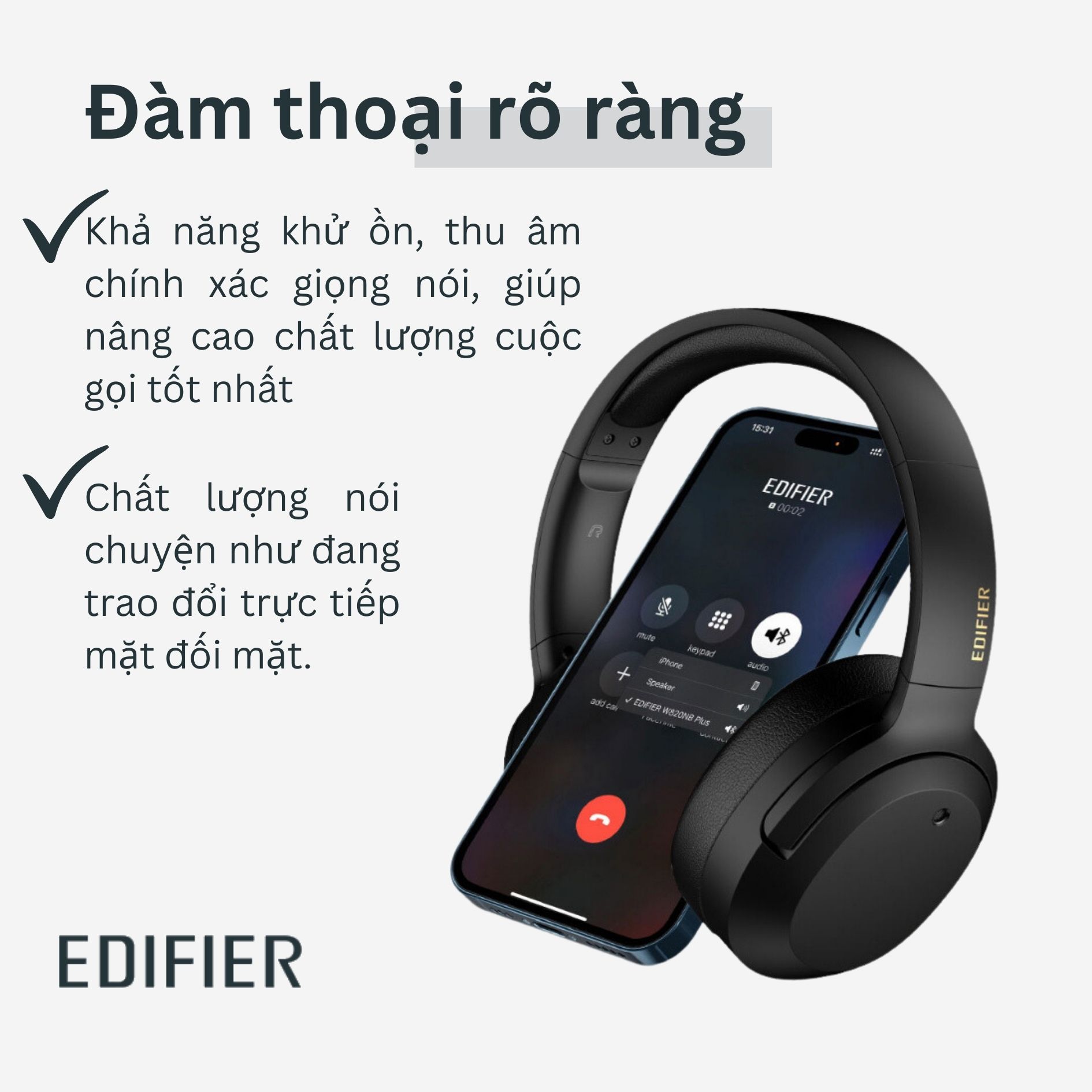 - Tai nghe Bluetooth Edifier WH950NB với thiết kế tinh tế, sang trọng kết hợp tính năng sử dụng tuyệt vời: trang bị thuật toán khử tiếng ồn chủ động, sử dụng 4 micro hỗ