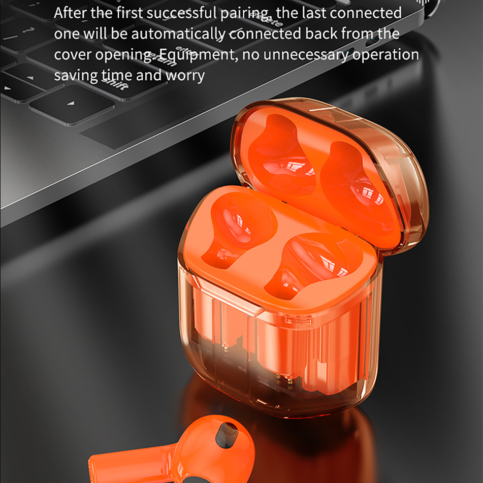 Đích thực không dây, nhẹ như bông  - Thiết kế bề ngoài hoàn toàn trong suốt, có được trải nghiệm thẩm mỹ công nghệ sống động. - Điều chỉnh công nghệ âm thanh chuyên nghiệp,