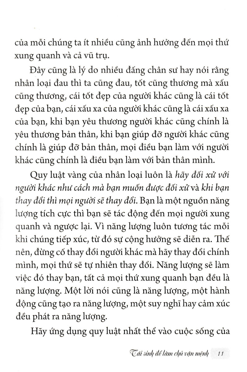Tái Sinh Để Làm Chủ Vận Mệnh (Sbooks)   TÁI SINH ĐỂ LÀM CHỦ VẬN MỆNH - SÁT KHUẨN TÂM THỨC, CHỮA LÀNH TỔN THƯƠNG, KIẾN TẠO THỰC TẠI       Cuốn sách sẽ phần nào giúp bạn hiểu rõ được tâm thức của bản thân, xé bỏ dần những lớp bản ngã độc hại để bạn có thể tìm được về bản thể thần thánh của chính linh hồn mình và thích nghi được với môi trường sống, làm việc ở hiện tại, lột bỏ đi những định tin cố hữu mà bạn đã dung nạp qua rất nhiều năm tháng.
