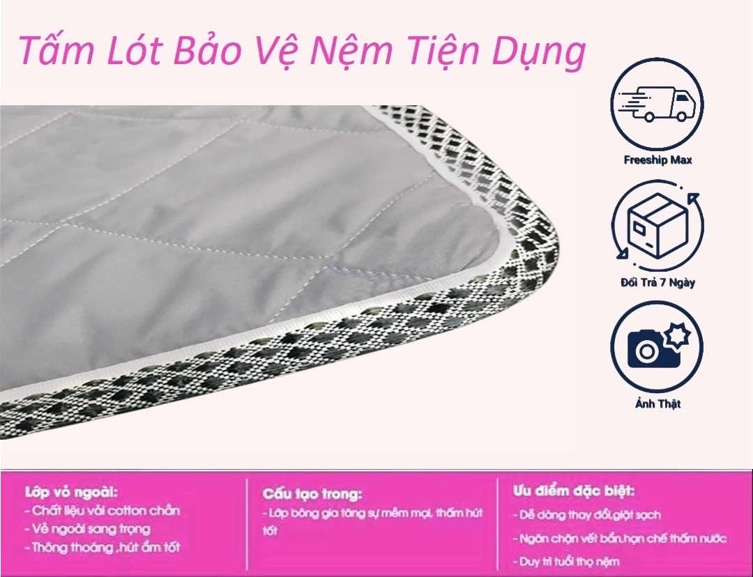Tấm lót bảo vệ nệm chống thấm 100% giúp bạn giải quyết triệt để vấn đề nước đổ lên nệm, hay bé tè dầm, nôn ói làm nệm bị dơ và có mùi khó chịu.