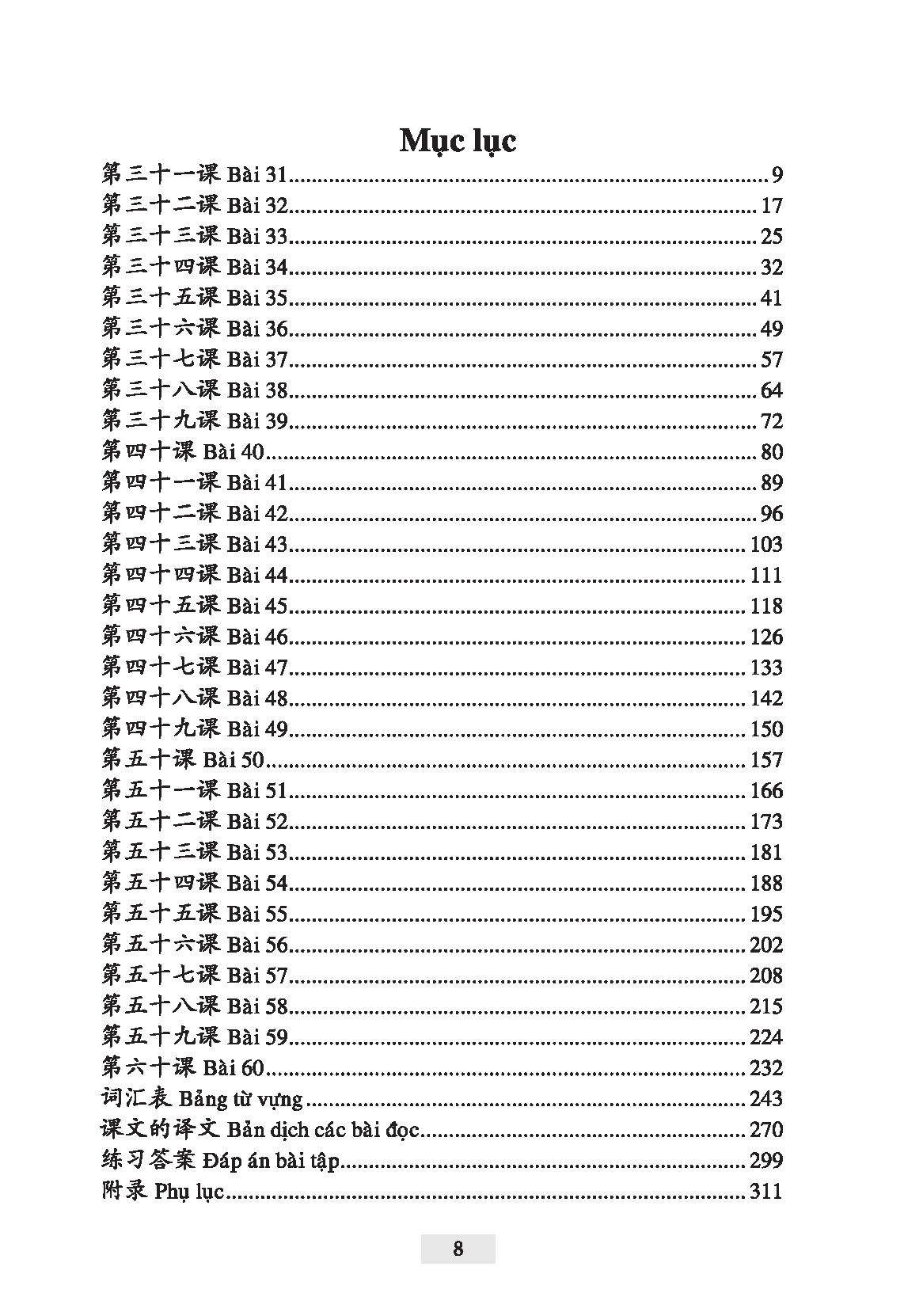 Giáo Trình Hán Ngữ 3 - Tập 2: Quyển Thượng (Phiên Bản 3) Các bài học trong “Giáo trình Hán ngữ” Tập 1 và Tập 2 được thiết kế như sau: 1. Bài đọc, 2. Từ mới, 3. Chú thích, 4. Ngữ âm, Ngữ pháp, 5. Luyện tập. 1. Bài đọc Bài khóa ở Tập 1 và Tập 2 (từ bài 1 đến bài 50) chủ yếu là những đoạn hội thoại thực tế, ngoài ra có biên soạn một vài đoạn văn trần thuật. Bài khóa là một phần quan trọng nhất trong giáo trình, và cũng là nội dung giảng dạy chủ yếu trên lớp. Bài khóa là môi trường để ứng dụng ngữ pháp và từ vựng. Ngữ pháp là cấu trúc khung khi thiết kế bài khóa và cũng là một sợi dây liên kết ngầm. Tách riêng khỏi bài khóa, ngữ pháp sẽ không còn môi trường để ứng dụng. Hoạt động giảng dạy tiếng Hán trên lớp ở giai đoạn sơ cấp nên kết hợp cả ba yếu tố này trên cơ sở tuân thủ nguyên tắc ngữ pháp từ dễ đến khó. Phải giúp cho sinh viên hiểu ngữ cảnh sử dụng câu, để sinh viên từng bước nắm được cách biểu đạt câu từ cho chính xác trong từng ngữ cảnh cụ thể. Mục đích của chúng ta là lấy ngữ pháp làm kim chỉ nam cho việc học bài khóa, thông qua kỹ xảo như đọc diễn cảm, đọc thuộc, viết lại bài khóa… để nâng cao kỹ năng nghe, nói, đọc, viết cho sinh viên và củng cố khả năng giao tiếp xã hội bằng tiếng Hán. Việc giảng dạy trên lớp nên chú ý tập trung cho sinh viên nghe, đọc, nói lại bài khóa. Tất cả các phần như từ mới, chú thích, và ngữ pháp đều phục vụ cho việc dạy và học bài khóa. 2. Từ mới Ở Tập 1 và Tập 2 của bộ giáo trình có tổng cộng hơn 1600 từ mới. Tiêu chí lựa chọn những từ này chính là tần suất sử dụng thường xuyên của nó. Hơn nữa mỗi bài chỉ có một lượng từ nhất định. Trên lớp, các thầy cô hãy giảng dạy từ mới trong câu bởi chỉ có câu và bài khóa mới có khả năng quy định tính duy nhất về nghĩa của từ. 3. Chú thích Phần chú thích trong giai đoạn ngữ âm chủ yếu giới thiệu kiến thức cơ bản về ngữ âm tiếng Hán. Còn ở giai đoạn ngữ pháp và mẫu câu, chủ yếu giới thiệu và giải thích một số kiến thức trọng điểm về ngôn ngữ và bối cảnh văn hóa Trung Quốc. Đối với những câu có điểm ngữ pháp xuất hiện trong bài khóa nhưng chưa được giải thích, hãy để sinh viên được hiểu nghĩa thông qua phần dịch nội dung chú thích. 4. Ngữ âm, ngữ pháp Bộ giáo trình dành 10 bài để giảng dạy ngữ âm. Nhưng nói một cách nghiêm túc, việc luyện tập ngữ âm, ngữ điệu cần phải xuyên suốt cả giai đoạn sơ cấp. Tầm quan trọng của việc luyện tập ngữ âm là rất lớn và cần đặc biệt nhấn mạnh. Phải lưu ý rằng, ở giai đoạn mẫu câu và đoạn văn, việc giảng dạy ngữ âm cần được tiến hành kết hợp với việc luyện đọc to và học thuộc bài khóa. Các bài luyện đọc ngữ âm được thiết kế trong phần bài tập chỉ mang tính chất gợi ý. Phần ngữ pháp của giáo trình sẽ không quá chú trọng tính hệ thống, thế nhưng nó được biên soạn theo nguyên tắc từ dễ đến khó, nắm bắt dần dần. Vì vậy, nếu không hoàn thành tốt nhiệm vụ giảng dạy của Tập 1 và Tập 2 mà giảng dạy ngay vào Tập 3 sẽ gặp phải nhiều khó khăn. Cần nhấn mạnh rằng, bộ giáo trình này dựa vào cấu trúc ngữ pháp tiếng Hán để giảng dạy bài đọc, dạy sinh viên nói tiếng Trung theo kết cấu ngữ pháp. Do đó, việc giải thích ngữ pháp cần ngắn gọn, rõ ràng, đơn giản, mạch lạc, bắt đầu từ cấu trúc ngữ pháp rồi giải thích ngữ nghĩa, chức năng, ngữ dụng; dạy sinh viên cách vận dụng ngữ pháp để nói, viết, biểu đạt tiếng Hán. Trên lớp, giáo viên có thể sử dụng nhiều phương pháp hình tượng, trực quan như tranh ảnh, động tác, phần mềm máy tính… để giảng giải các hiện tượng ngữ pháp, giúp sinh viên nắm bắt ý nghĩa, chức năng và ngữ cảnh của từng điểm ngữ pháp nhằm nâng cao khả năng giao tiếp bằng tiếng Hán của sinh viên. 5. Luyện tập Các bài tập trong giáo trình chú trọng nguyên tắc học tập đi từ lý giải, mô phỏng, ghi nhớ, thành thạo rồi đến ứng dụng. Các dạng bài tập bao gồm bài tập lý giải, bài tập mô phỏng và bài tập giao tiếp,… hỗ trợ cả nhu cầu học trên lớp lẫn nhu cầu tự học ở nhà. Giáo viên