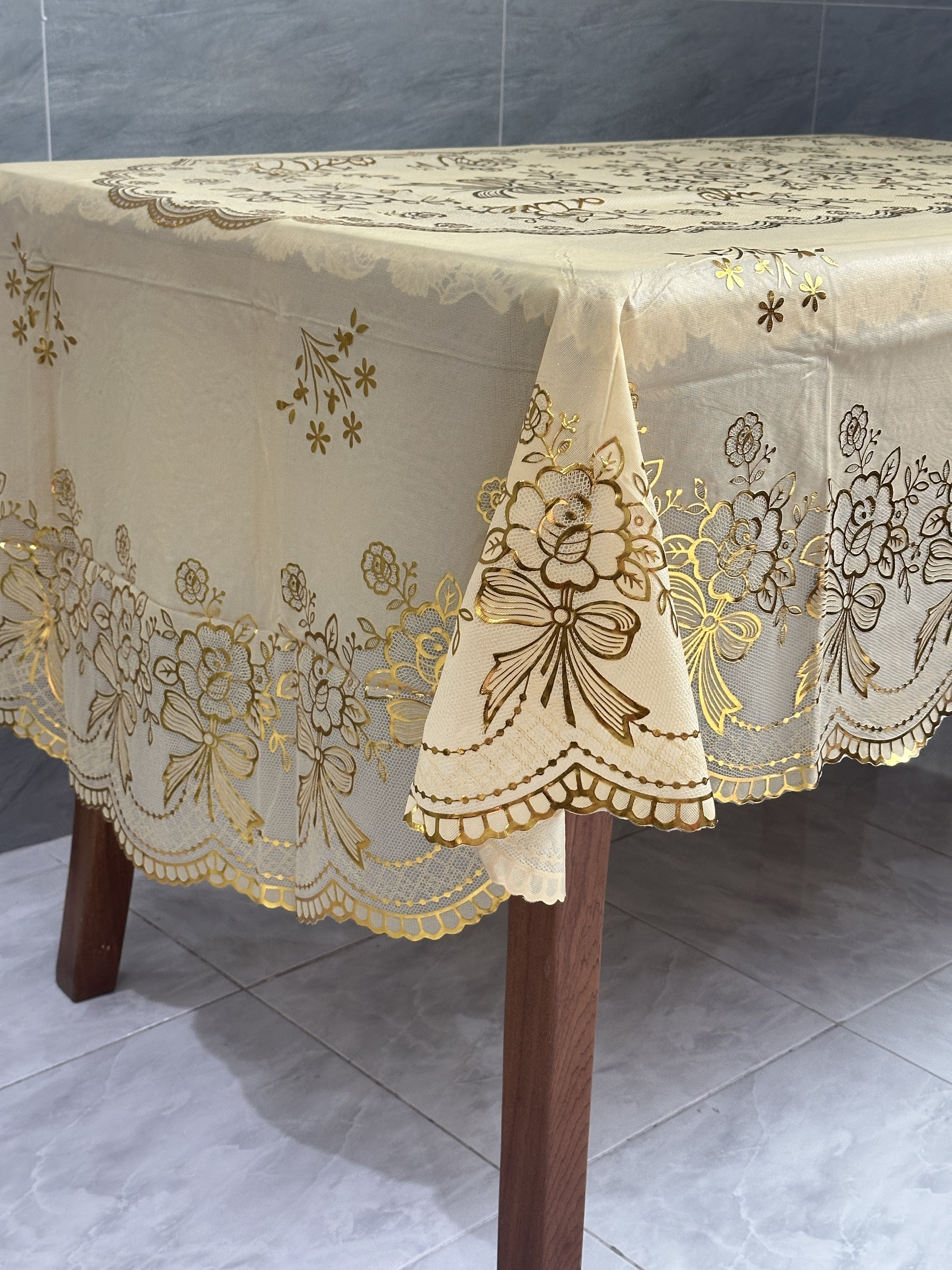 #unboxing khăn trải bàn nhựa hoa ren nhũ vàng sang trọng 40