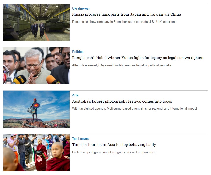 • Là thương hiệu truyền thông lớn và được kiểm duyệt nội dung hằng tuần với dạng thông tin chính thống, được thu thập từ các phóng viên uy tín trên toàn Châu Á, là nguồn trích xuất cho nhiều nhà báo tại Việt Nam.