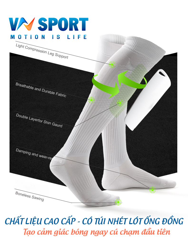 Thiết kế co giãn, ôm chân, tạo cảm giác thoải mái, độ bền cao. - Chất Liệu: Vải cotton - sợi dệt Spandex. - Màu sắc bắt mắt, giúp bạn luôn nổi bật trên sân