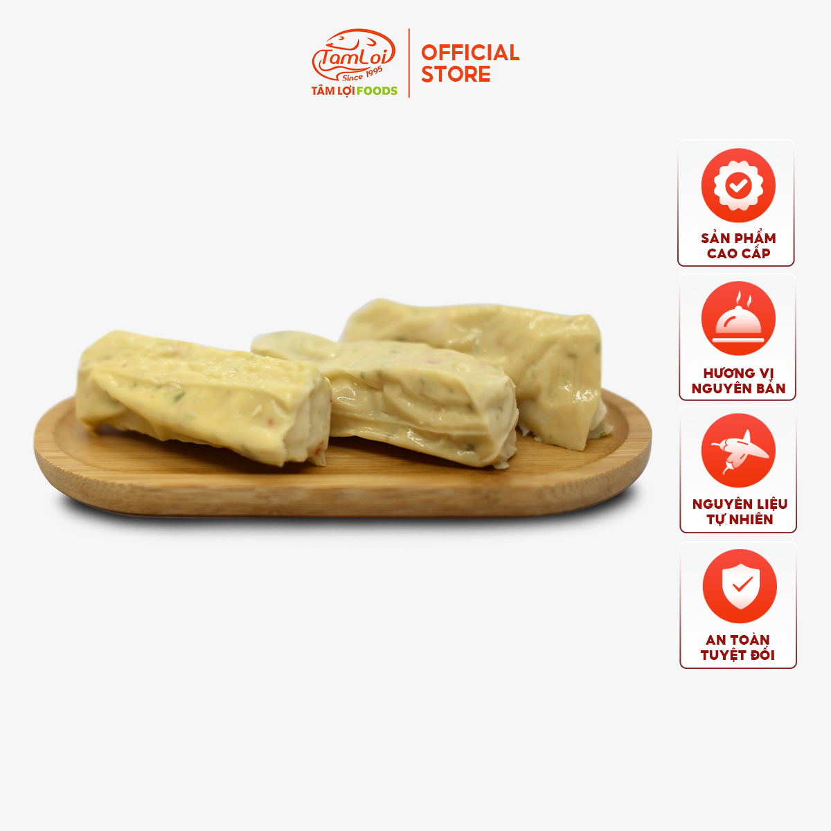 • Sự kết hợp giữa thịt cá basa và thịt cá Surimi qua sự chế biến của các chuyên gia đến từ Tâm Lợi Foods tạo ra một món ngon mang tên Tàu hủ ky cuộn cá hành ớt. Các thành phần nguyên liệu của món ăn luôn được lựa chọn kĩ càng đảm bảo chất lượng và an toàn thực phẩm.