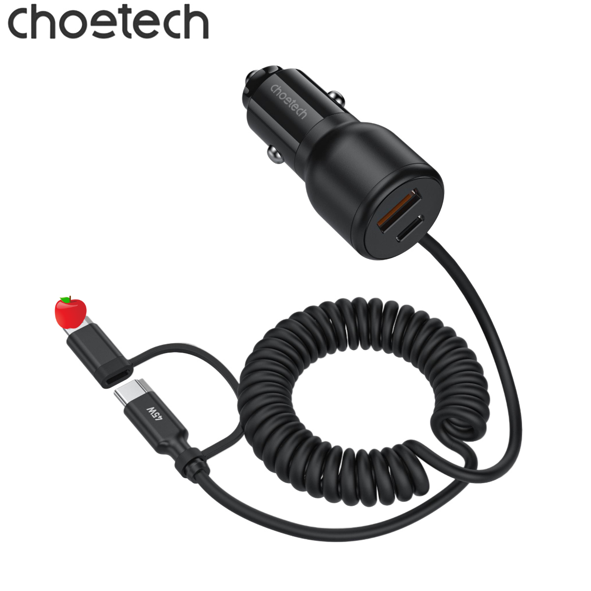 ✨Tẩu sạc trên ô tô 110W Choetech TC0038 tích hợp cáp lò xo Type C kèm đầu nối iP - Hàng chính hãng